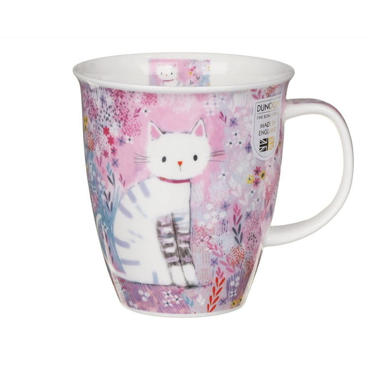 DUNOON, kubek NEVIS - Tiddles Dla miłośnika miauczących zwierząt kubek Nevis - Tiddles przedstawiający białego, pręgowane kota siedzącego różowej łączce pełnej kwiatów.Kolekcja "Nevis" to kolekcja ...