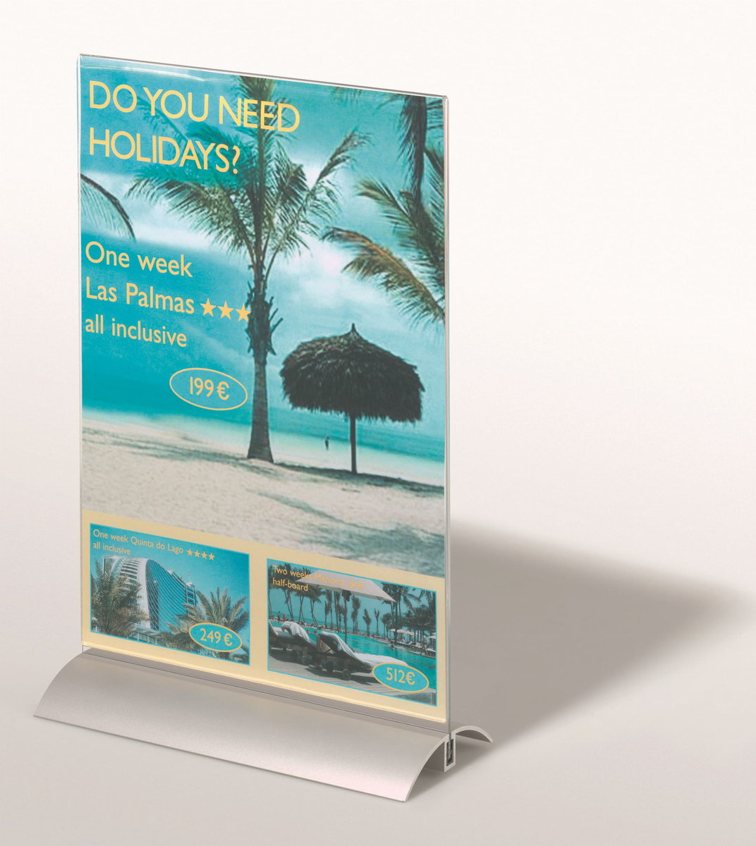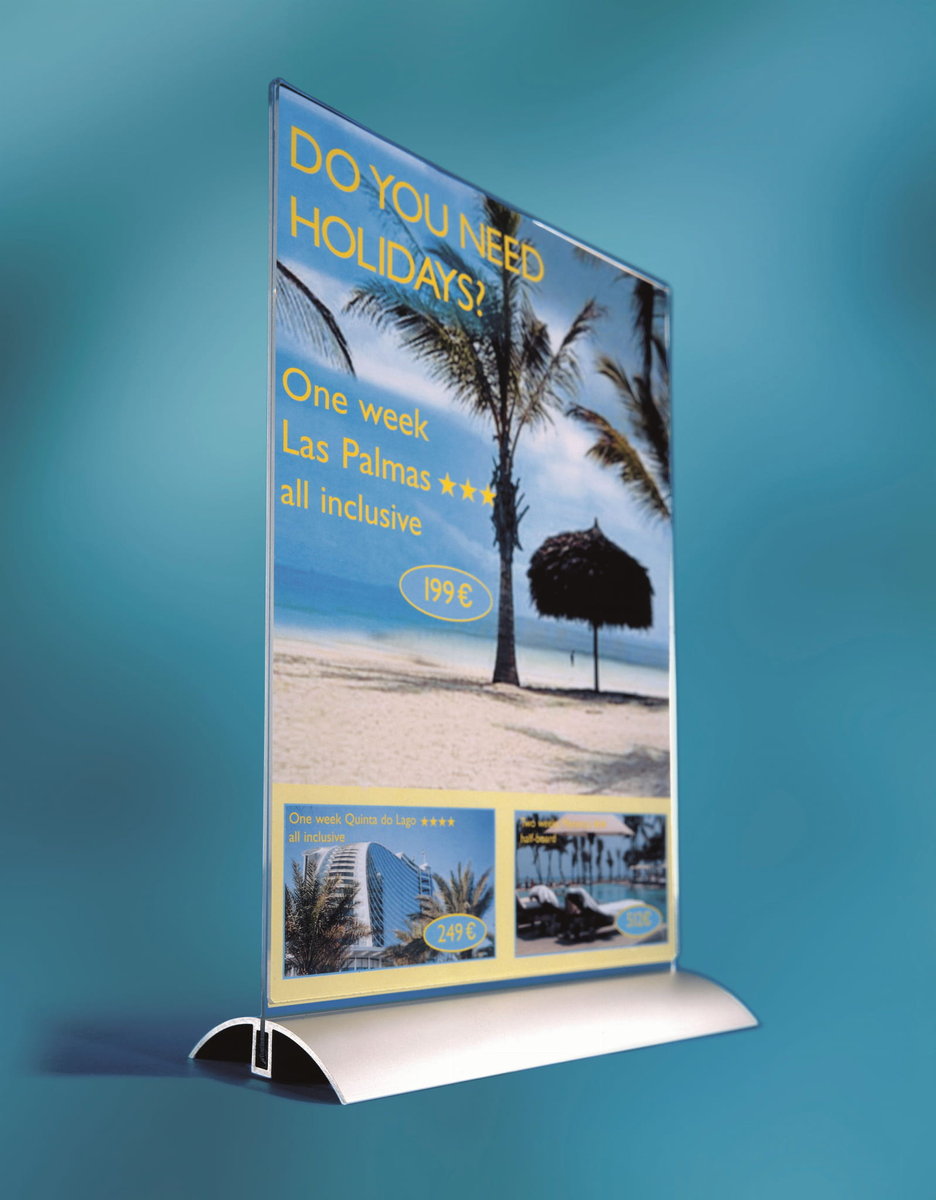 - Łatwe wkładanie i wyjmowanie informacji bez wyciągania płytki akrylowej ze stopki aluminiowej