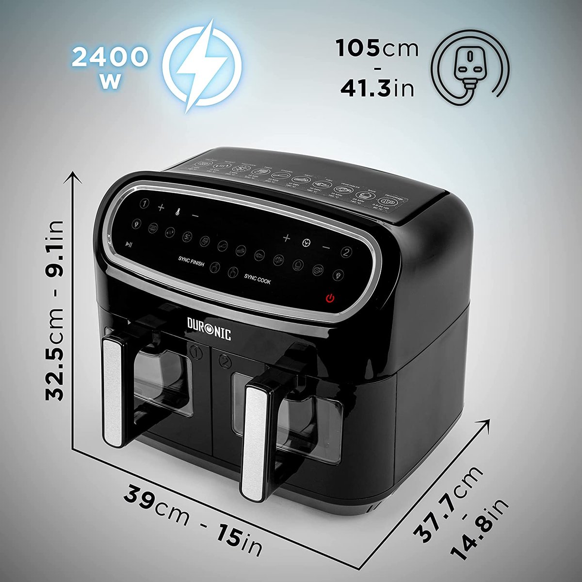 | Nazwa: | Duronic AF34 Airfryer XXL zestaw z AFD1 10l i dwie komory po 4,5l | frytkownica beztłuszczowa podwójna | na gorące powietrze piekarnik | temperatura 50-200 stopni |
