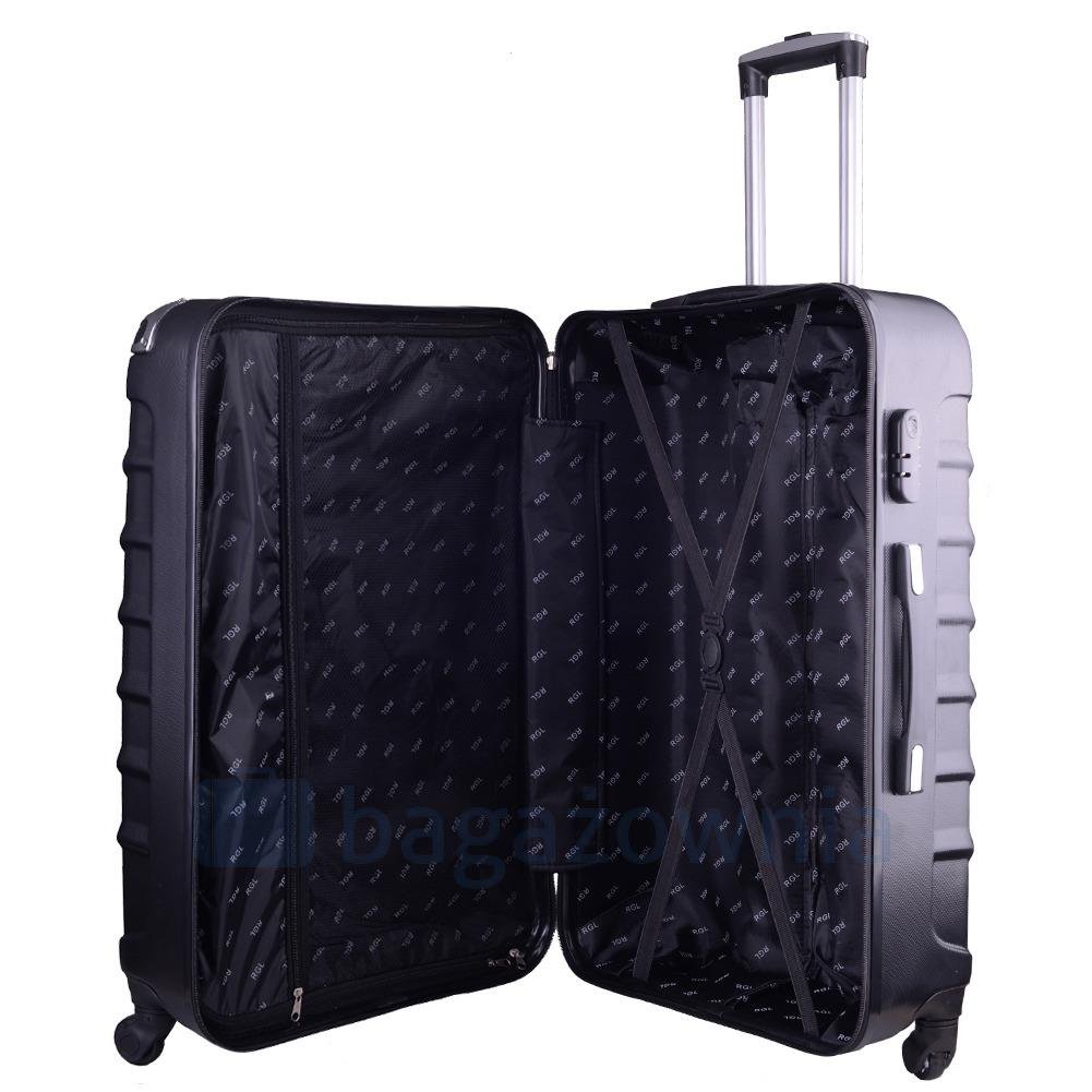 Budowa: walizka twarda wykonana z ABS 4 łożyskowane koła (spinner 360) (koła wykonane z mieszanki gumy i kauczuku, co dodatkowo wzmacnia je przed uderzeniami zewnętrznymi) stelaż aluminiowy ...