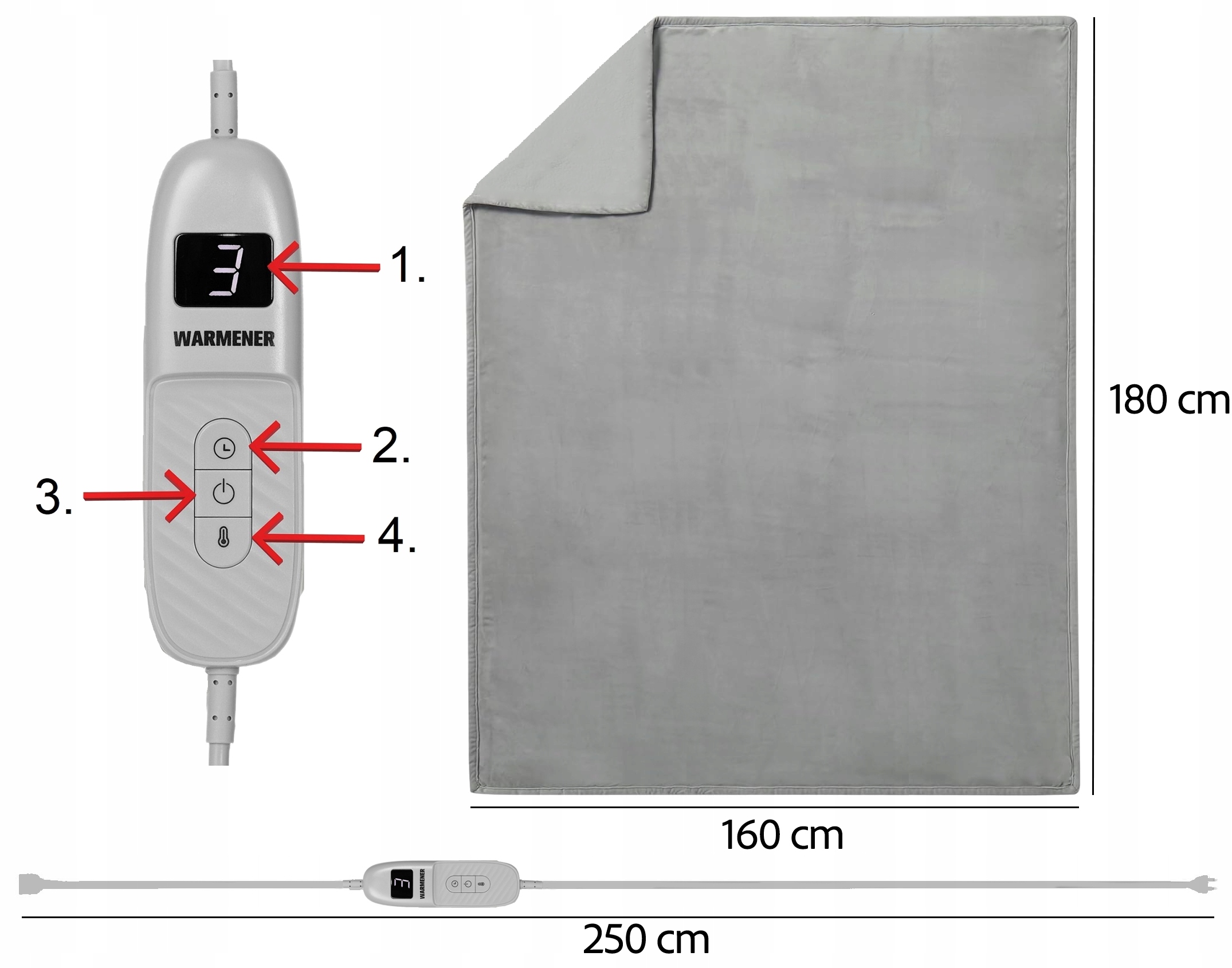 Zimno? Koc elektryczny Warmener na ratunek! ✅ Rozmiar XXL - Nasz koc elektryczny o imponujących wymiarach 180x160 cm zapewnia obfitą przestrzeń, która otacza Cię komfortem na każdym kroku. ✅