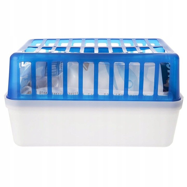 Pochłaniacz wilgoci w formie dużego pojemnika, który został wypełniony granulkami pochłaniającymi wilgoć. Pochłaniacz o wymiarach: 26 x 16 x 14,5 cm. Masa pochłaniacza to 1 kg.