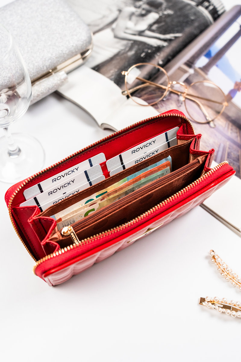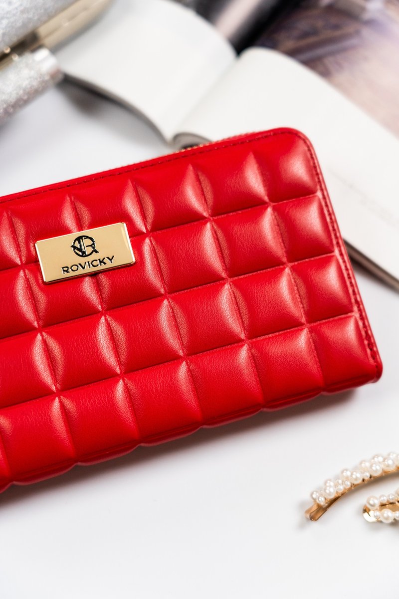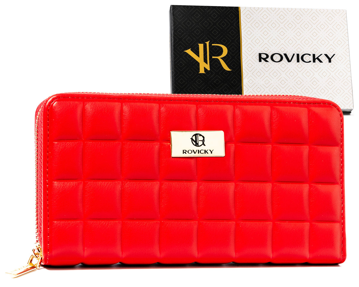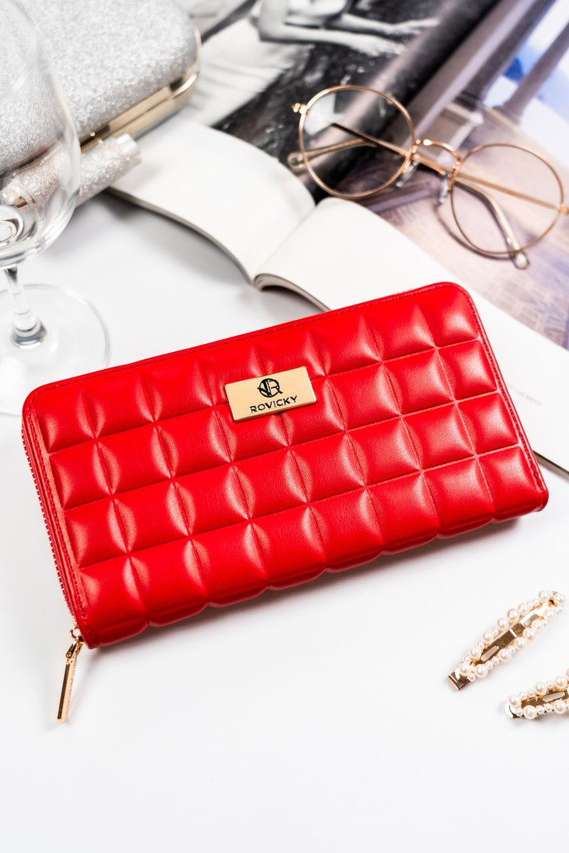Duży portfel damski ROVICKY®️ czerwony, z pikowanym wzoremPortfel damski marki Rovicky®️ to połączenie nowoczesnego wzornictwa i wyjątkowego wykończenia, które podkreślają jego ekskluzywny ...