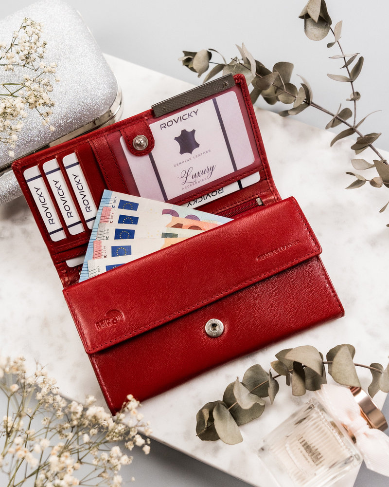 | Nazwa: | Skórzany damski portfel Cavaldi z ochroną RFID pojemna portmonetka na karty i gotówkę, czerwony |