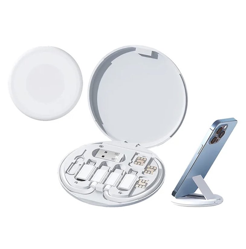 Twoje kable mini USB będą zawsze czyste i uporządkowane, dzięki czemu unikniesz frustracji związanej z poszukiwaniem odpowiedniego kabla.Uchwyt na Kartę SIM:W zestawie znajdziesz także specjalne gniazdo na karty SIM oraz ekstraktor SIM. Idealne rozwiązanie dla osób podróżujących między krajami, pozwala na łatwe przełączanie kart SIM w dowolnym miejscu i czasie. Podróżuj z lekkością i wygodą dzięki temu wszechstronnemu zestawowi.Stojak na Telefon i Tablet:Potrzebujesz praktycznego stojaka do oglądania filmów, grania w gry lub przeglądania Internetu? Nasz adapter USB-C do oświetlenia działa również jako stabilny uchwyt na telefon lub tablet. Wszechstronny, elastyczny i trwały – idealny kompan na każdą okazję.