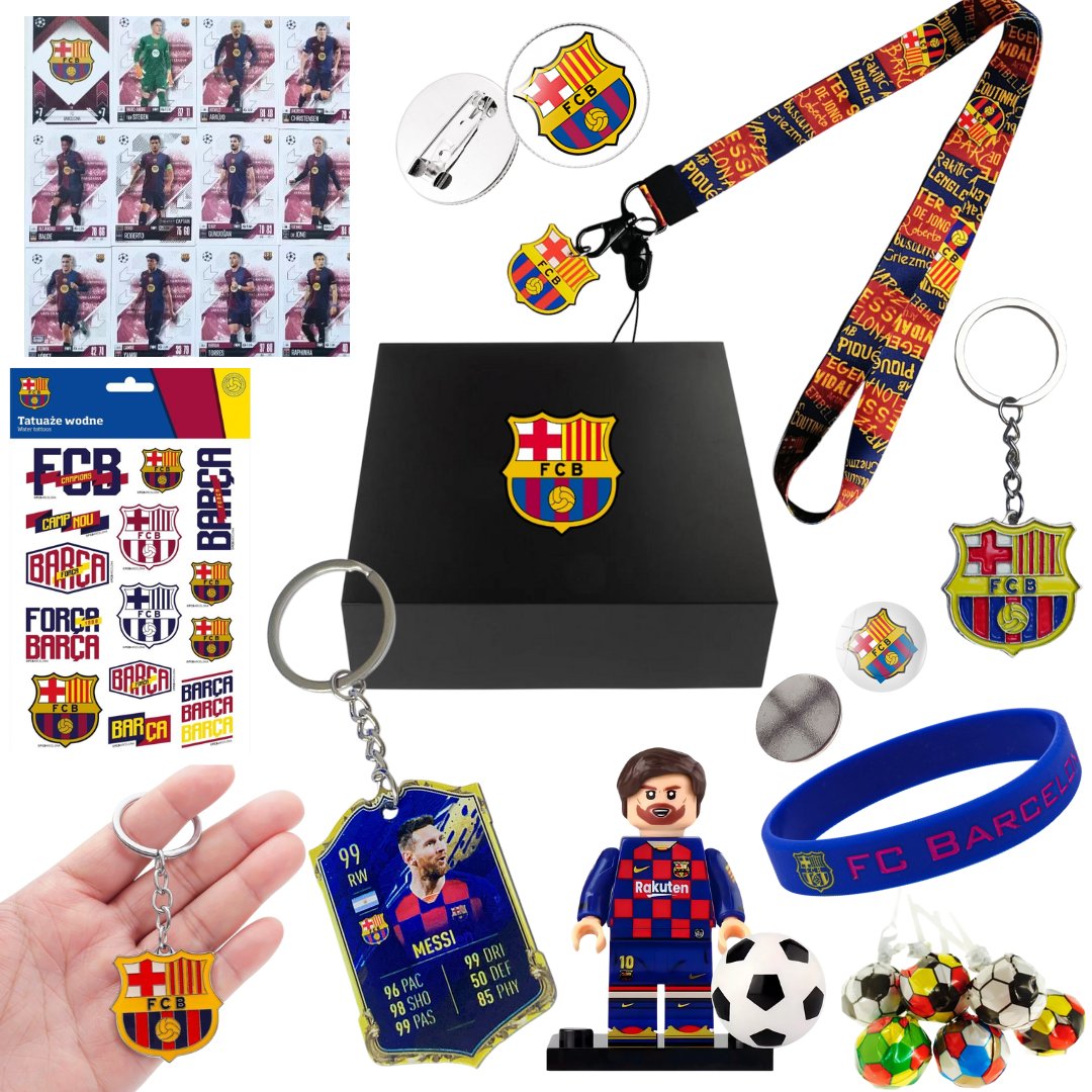 Na tej aukcji kupujesz duży zestaw prezentowy Fc Barcelona, idealne dla każdego fana piłki nożnej! Świetne rozwiązanie na prezent na każdą okazję, komplet zawiera aż 10 elementów piłkarskich, którę sprawią radość obdarowanemu.