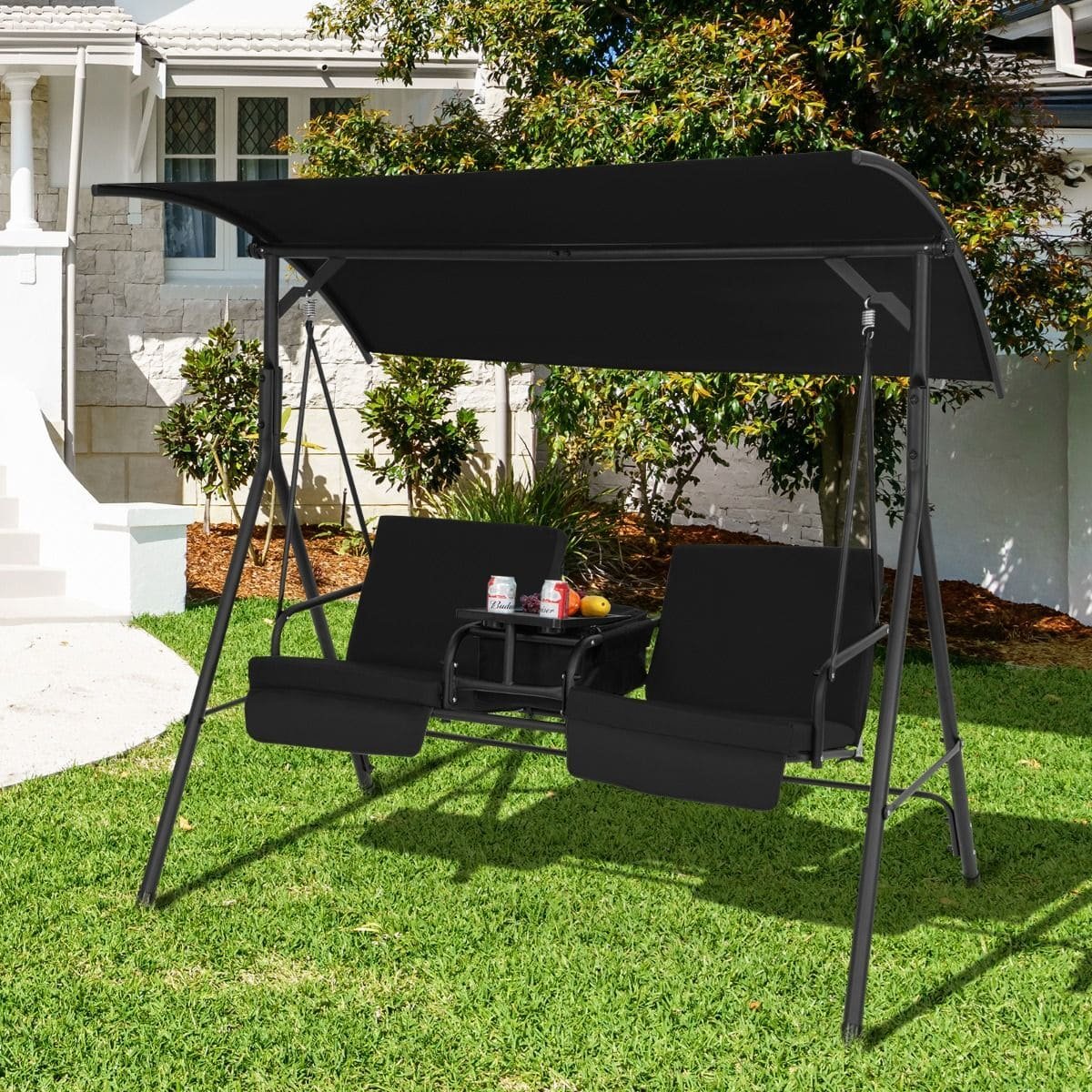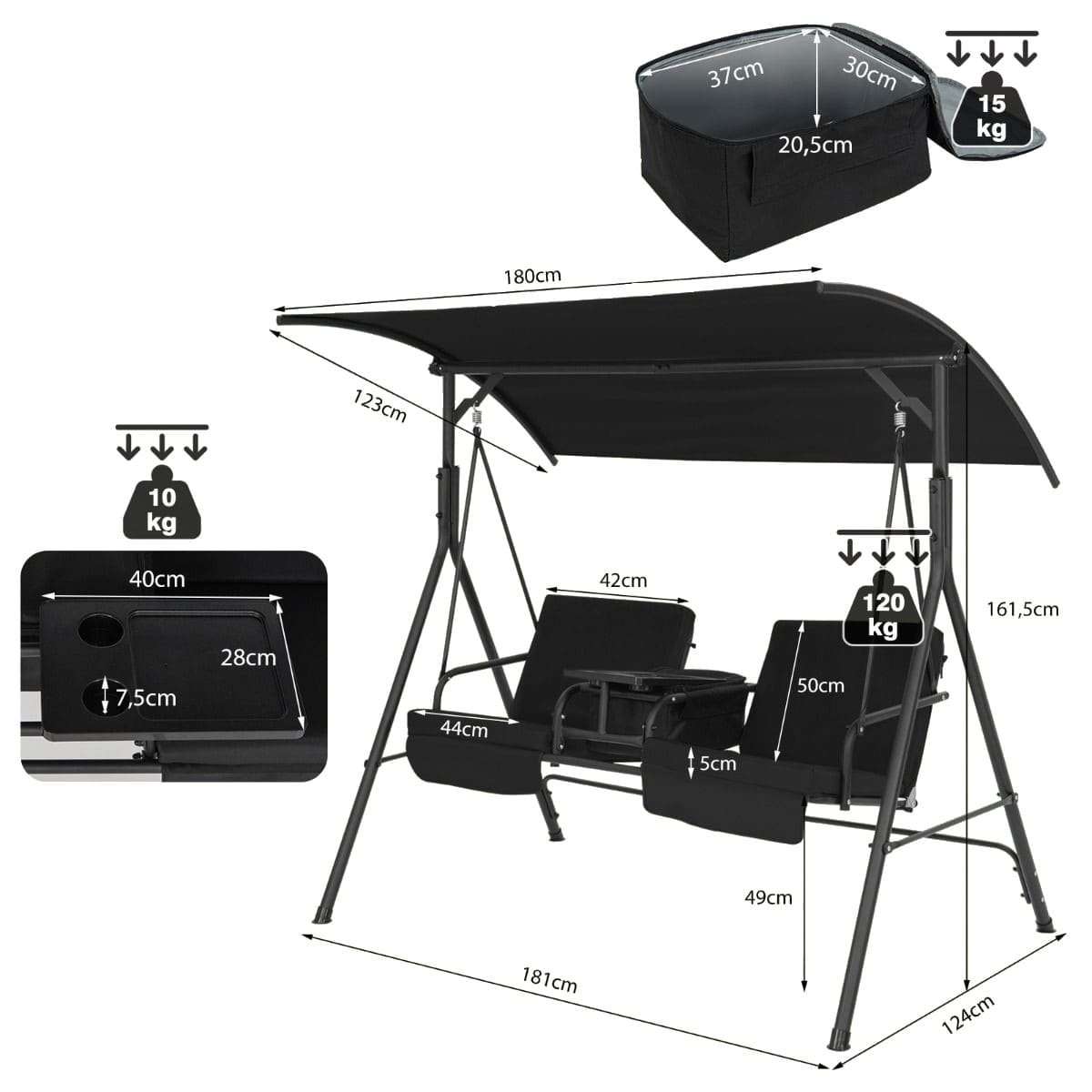 Dwuosobowa huśtawka ogrodowa z torbą termiczną czarna