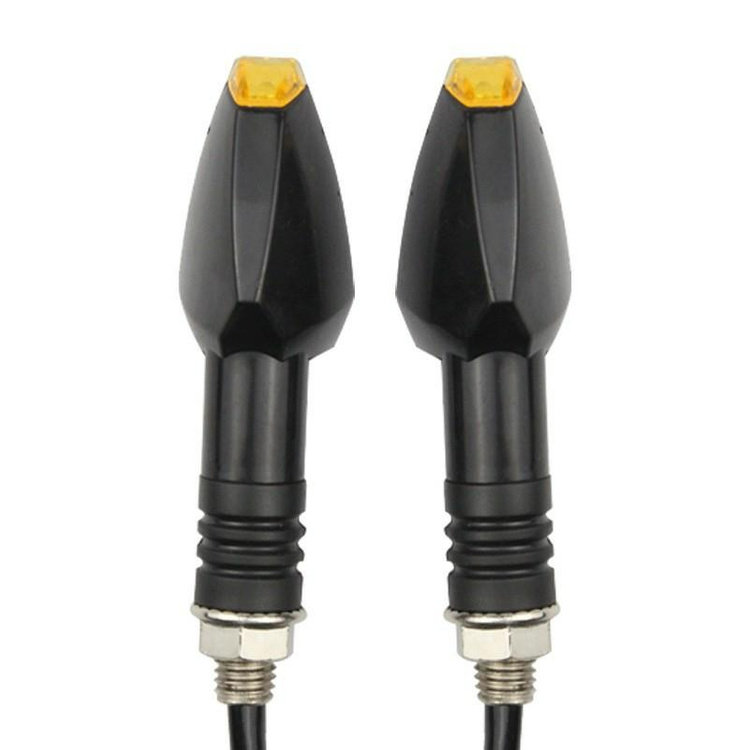 Uniwersalne kierunkowskazy LED do jednośladów. Doskonały dodatek do Twojego motocykla. Diody LED dają mocne, pomarańczowe światło - znacznie poprawiając widoczność. Charakterystyczne, dynamiczne przejście diod LED podczas wykonywania manewru zwiększa wrażenie estetyczne. Pasują do wszystkich motocykli wyposażonych w standardowy gwint M10.