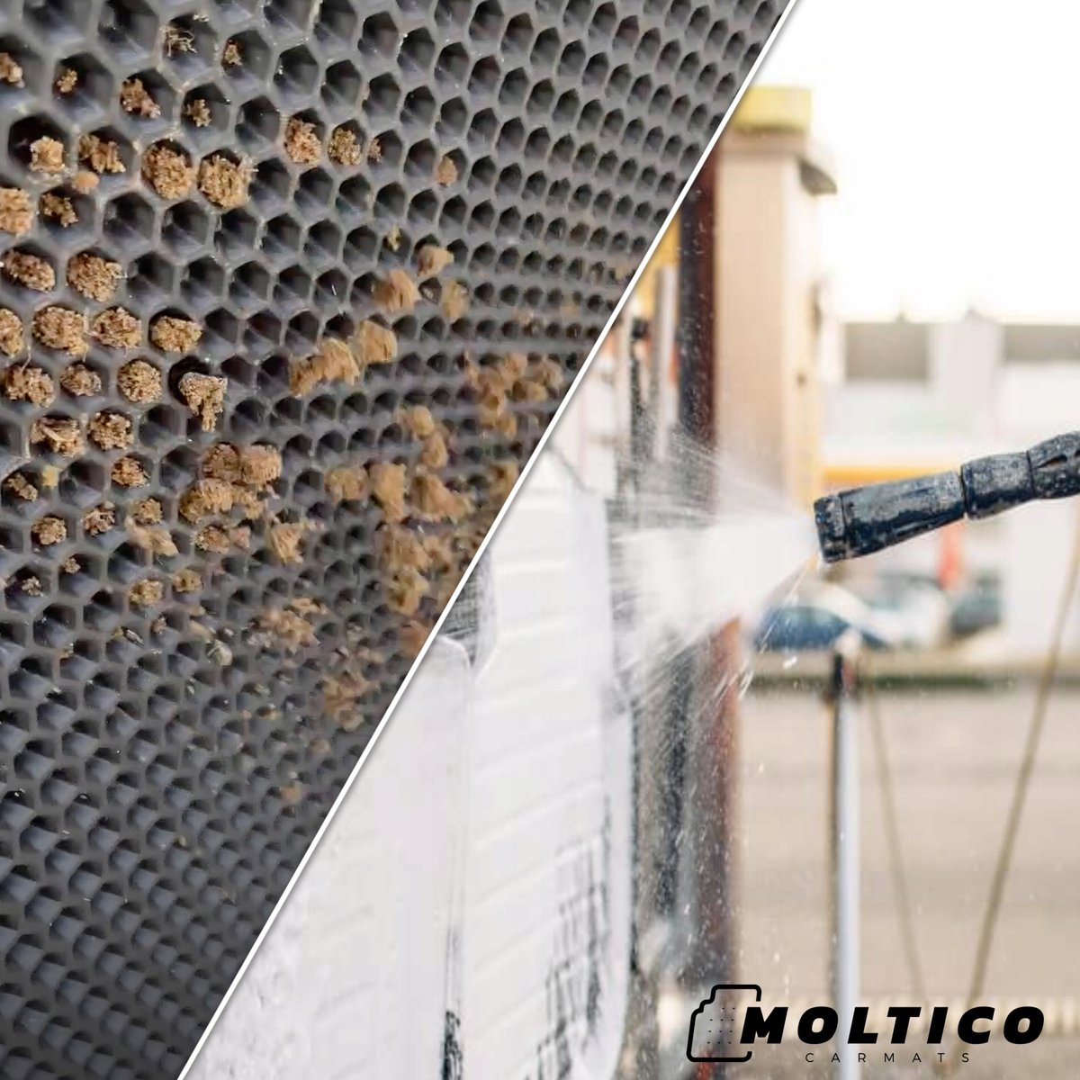 Zabrudzone dywaniki? Nic prostszego! Wystarczy kilka uderzeń od spodu, a cały brud opuści ich powierzchnię. Można je również czyścić myjkami wysokociśnieniowymi bez obaw o uszkodzenia.