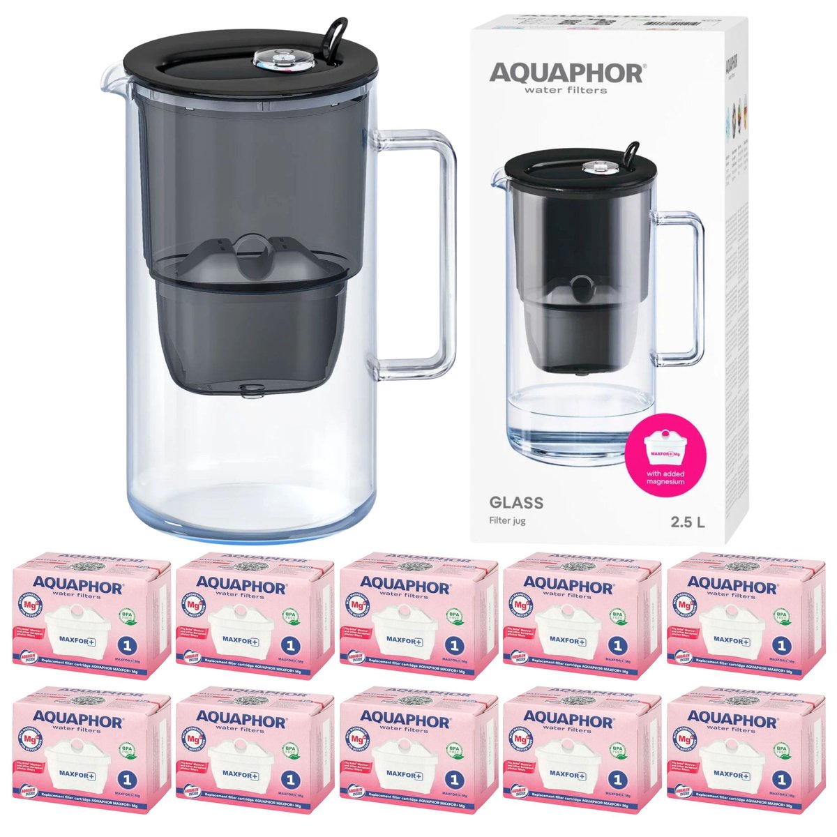 Aquaphor Glass czarny + 10 wkładów Maxfor+ Mg (filtry wzbogacające wodę w magnez) Dlaczego dzbanek filtrujący Aqupahor Glass?✔️ Bezpieczny: korpus wykonany ze szkła wolnego ...