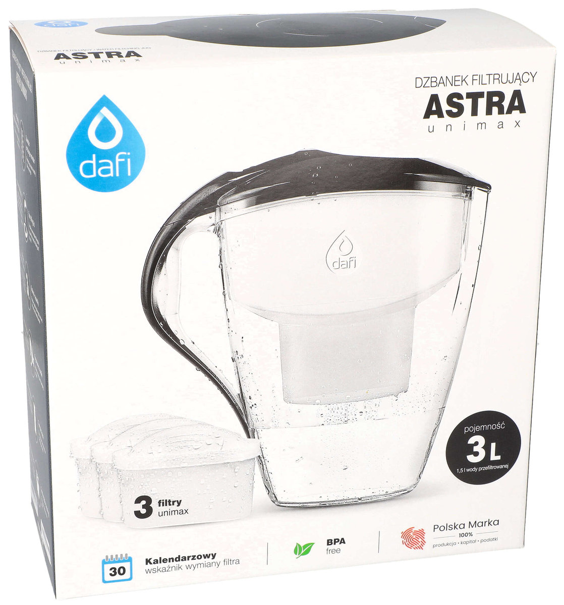 | Nazwa: | Dzbanek filtrujący wodę Dafi ASTRA 3L + 3x unimax CZARNY |