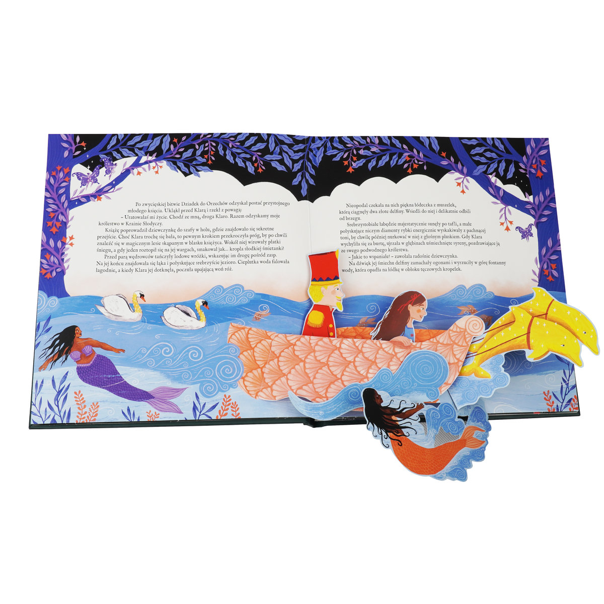 Piękna baśń została w tej książce opowiedziana nie tylko słowami, lecz także efektowną oprawą graficzną. Składają się na nią ilustracje oraz niezwykle misterne, wielowarstwowe trójwymiarowe sceny z baśni. Wyobraźnia dzieci rozkwitnie od nich z pewnością, a ciekawość „jak to wygląda” nareszcie zostanie zaspokojona.