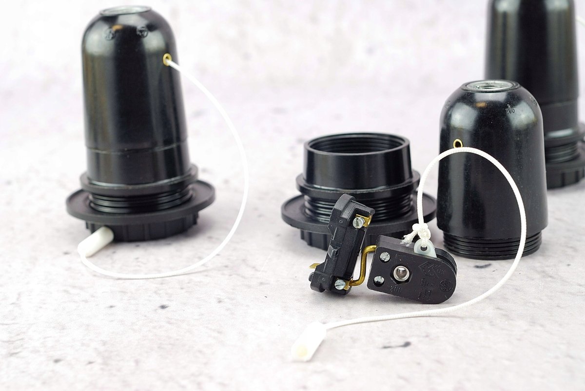 | Nazwa: | e27 oprawka bakelitowa z wyłącznikiem i dwa kołnierze do abażuru loft DIY |