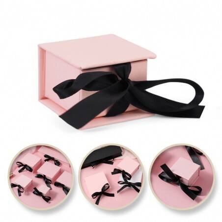 Eleganckie pudełeczko ozdobne - prezentowe na biżuterię. Środek poduszeczka w kolorze czarnym. W poduszce wycięte miejsce na kolczyki, pierścionek lub naszyjnik / bransoletkę. Wykonane ze sztywnego kartonu, zawiązywane wstążką.