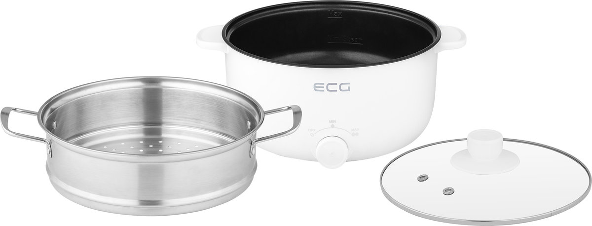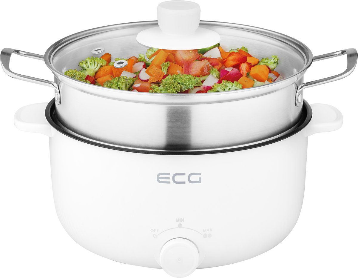 Garnek elektryczny Nowy styl gotowania bez konieczności używania kuchenki Do codziennego użytku Szeroki zakres zastosowań Łatwa obsługa i konserwacja Całkowita pojemność naczynia: 3 l Ten garnek jest odpowiedni do przygotowywania różnych potraw W głównym pojemniku/garnku można przygotować: sosy zupy makaron kaszka ryżowa (congee) dania duszone dania smażone W przystawce do gotowania na parze można przygotować: prawie wszystkich rodzajów żywności gotowane na parze 2 poziomy mocy: wolne gotowanie: do 450 W szybkie gotowanie: do 900 W Maksymalny zakres temperatur wynosi około 195 °C Łatwa konserwacja naczynia wewnętrznego: wystarczy spłukać wodą i wytrzeć serwetką lub ściereczką Zbiornik główny nie może być zanurzony w wodzie Blokada bezpieczeństwa Zabezpieczenie przed przegrzaniem Wymagana stała kontrola, mieszanie i ewentualne podlewanie Zawartość opakowania: korpus kuchenki z zespołem grzewczym niewyjmowane naczynie ze stali nierdzewnej z powłoką nieprzywierającą szklana pokrywa nasadka do gotowania na parze ze stali nierdzewnej odłączany kabel o długości 1 m Napięcie znamionowe: 220–240 V~ 50– 60 Hz Moc znamionowa: 900 W