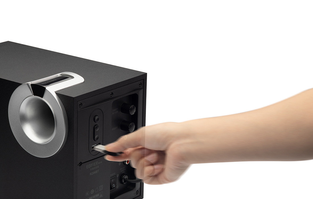 Ciesz się wymarzoną swobodą. Głośniki oferują kilka możliwości połączenia. Możesz na przykład odtwarzać muzykę z dysku flash USB lub podłączyć wybrane urządzenie za pomocą kabla AUX. M206BT obsługują też niezawodne łącze Bluetooth 5.0, które zapewnia szybką i stabilną transmisję bezprzewodową. Wybierz dowolne źródło dźwięku i słuchaj swoich ulubionych piosenek tak, jak lubisz!