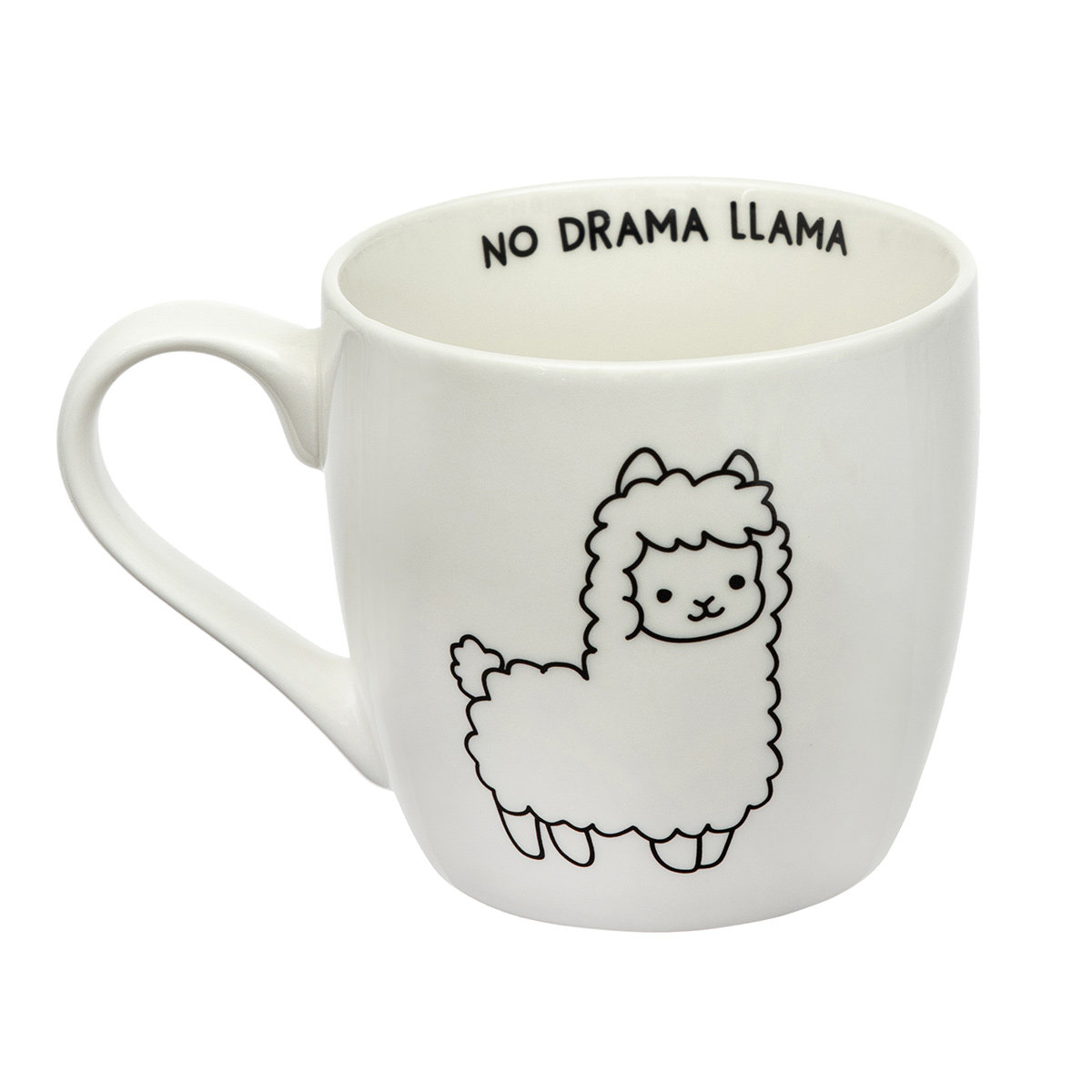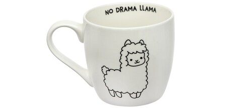 Kubek Lama, Biały, Porcelanowy, 430 ml porcelanowy kubek z grafiką ozdobiony grafiką lamy wewnątrz napis: "No drama LLama" materiał: porcelana new bone china kolor: biały, czarny ...