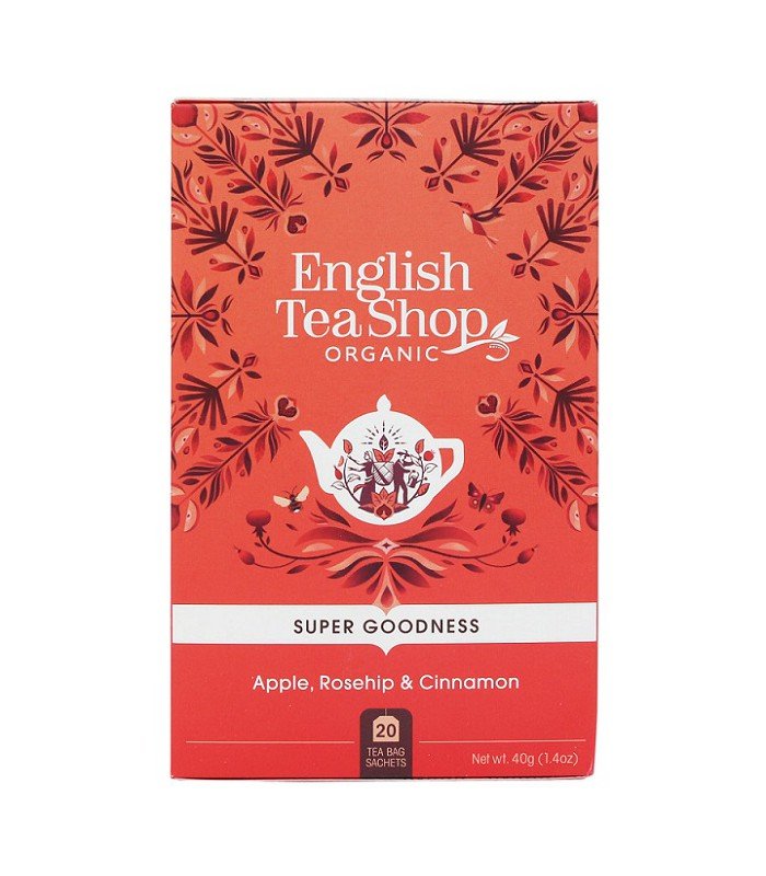 | Nazwa: | Ekologiczna herbata z hibiskusa z dziką różą, jabłkiem, cynamonem, Apple, Rosehip & Cinnamon, 20 x 2g, English Tea Shop |