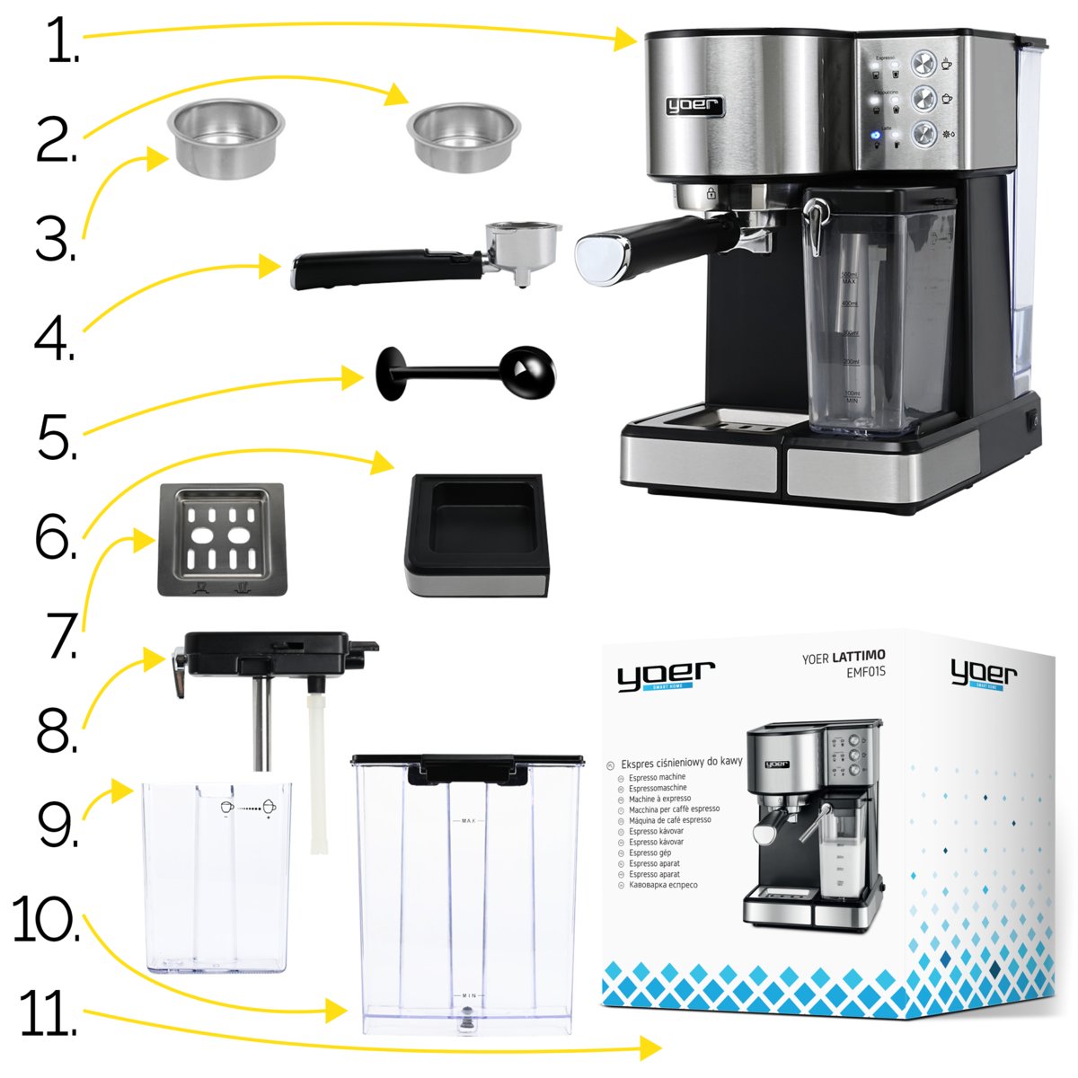 Kolbowy ekspres ciśnieniowy do kawy Yoer Lattimo EMF01S