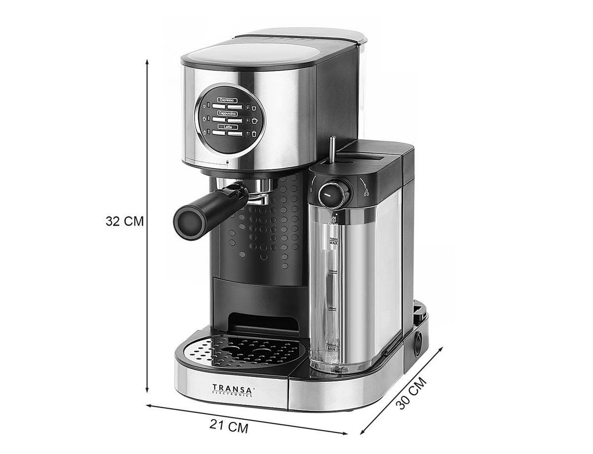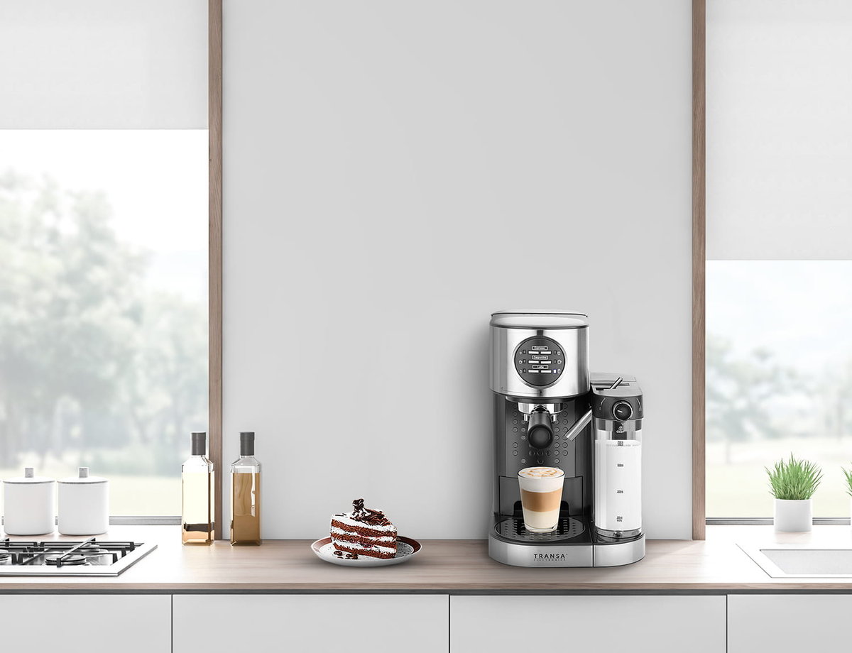 Ekspres ciśnieniowy do kawy Transa Electronics® to urządzenie przeznaczone do parzenia sypanej kawy pod ciśnieniem w trzech rodzajach do wyboru: Espresso, Cappuccino i Latte. Każdą z kaw możesz przygotować w dwóch wariantach do wyboru: kawa duża lub kawa mała. Ponadto urządzenie posiada funkcję indywidualnego programowania ilości parzonej kawy, dzięki której można dostosować ilość napoju do odpowiedniej szklanki lub filiżanki.