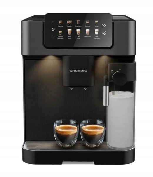 Ekspres ciśnieniowy do kawy z pojemnikiem na mlekoGrundig KVA7230Moc: 1350 W.Pojemność: 2 lCiśnienie pompy: 19 barPojemność pojemnika na ziarna kawy: 250gEkran dotykowy13-stopniowo regulowany stopień
