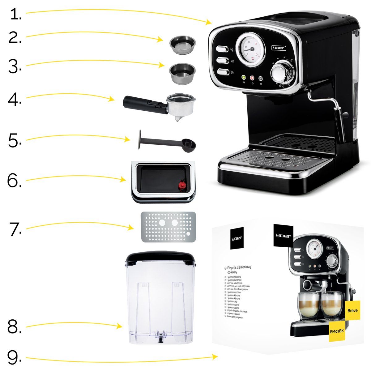 | Nazwa: | Ekspres do kawy Ciśnieniowy Kolbowy Yoer 1100W 20bar 10kaw +Spieniacz mleka |