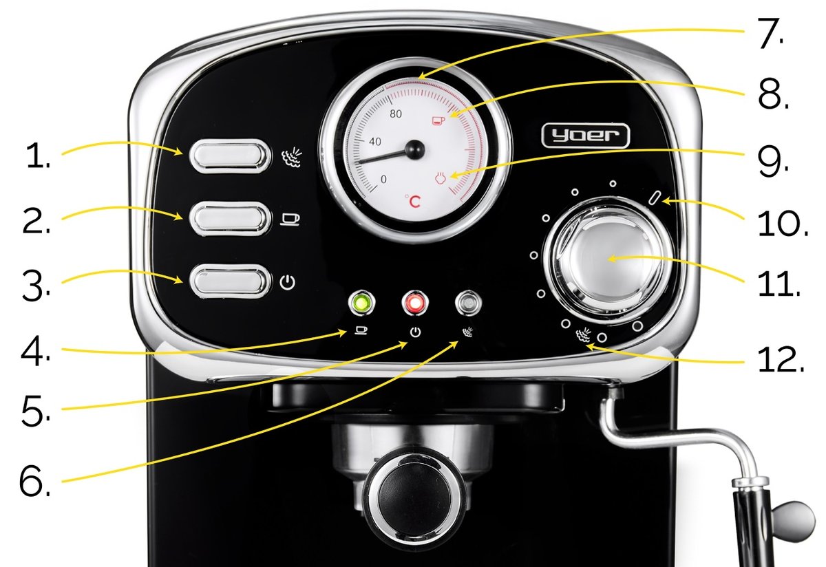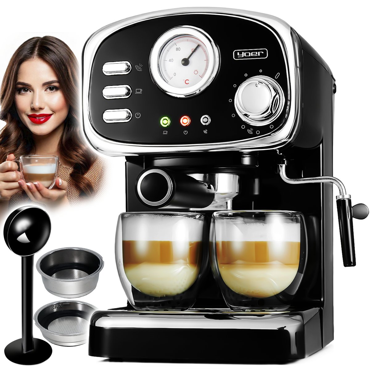 Właśnie zrecenzowałem Ekspres do kawy Ciśnieniowy Kolbowy Yoer 1100W 20bar 10kaw +Spieniacz mleka