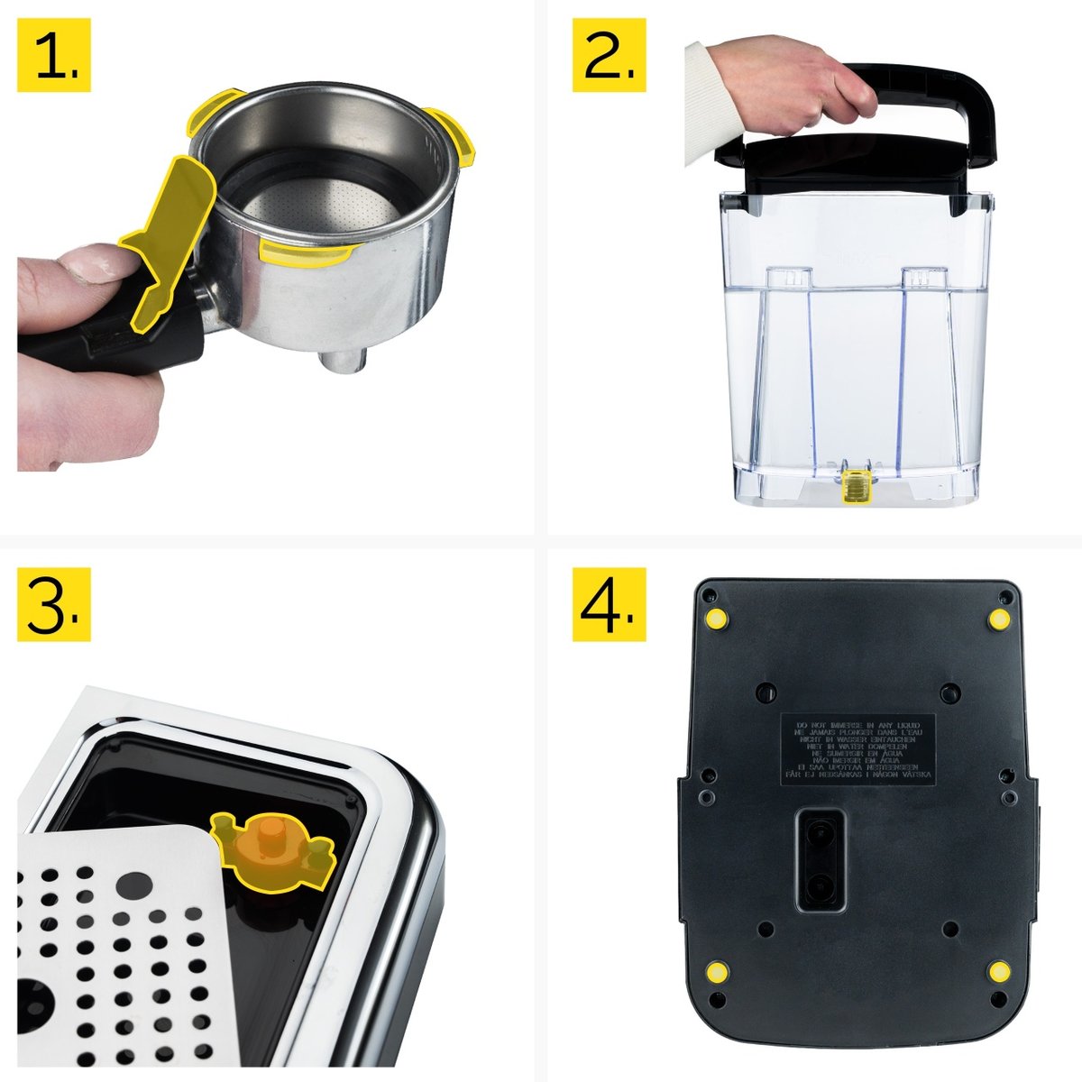 4️⃣ Antypoślizgowe nóżki - chronią przed gwałtownym przesunięciem ekspresu podczas parzenia kawy lub umieszczania kolby w uchwycie