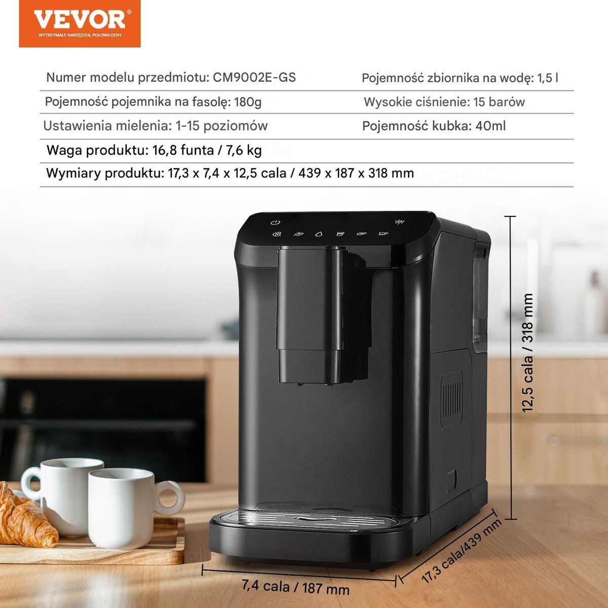 | Nazwa: | Ekspres do Kawy Automatyczny z Młynkiem - 1-15 Poziomów Mielenia |