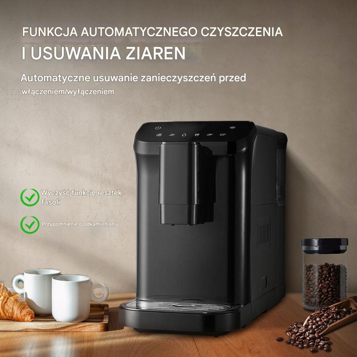 Wyczyść funkcję resztek fasoli, przypomnienie o odkamienianiu.