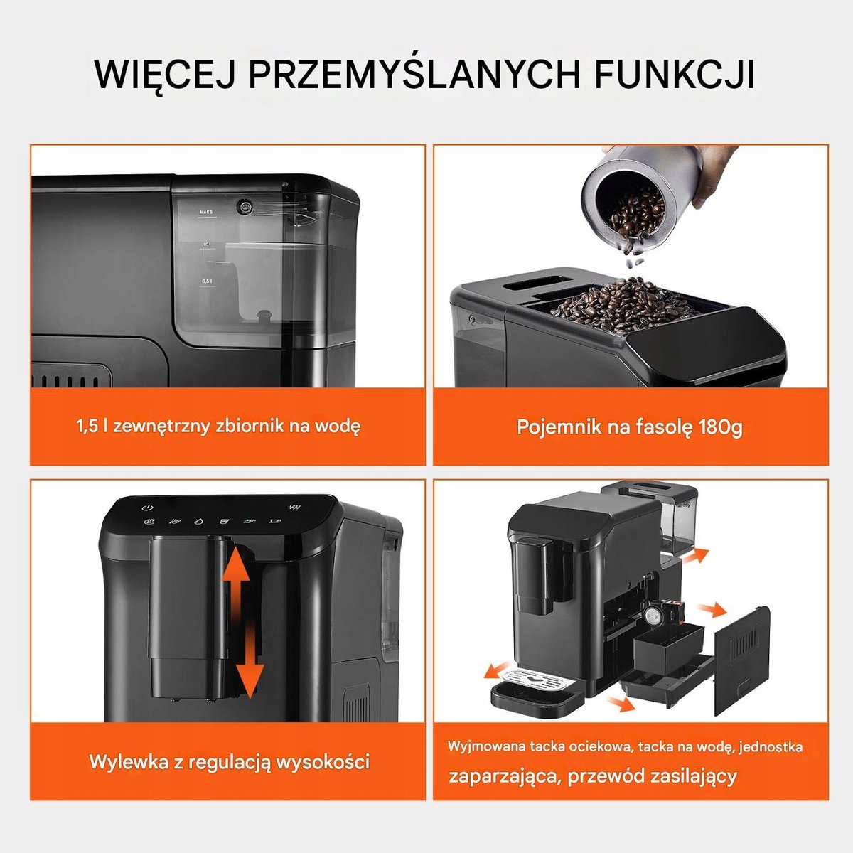 Pojemność pojemnika na fasolę: 180g.