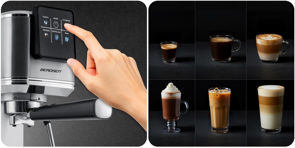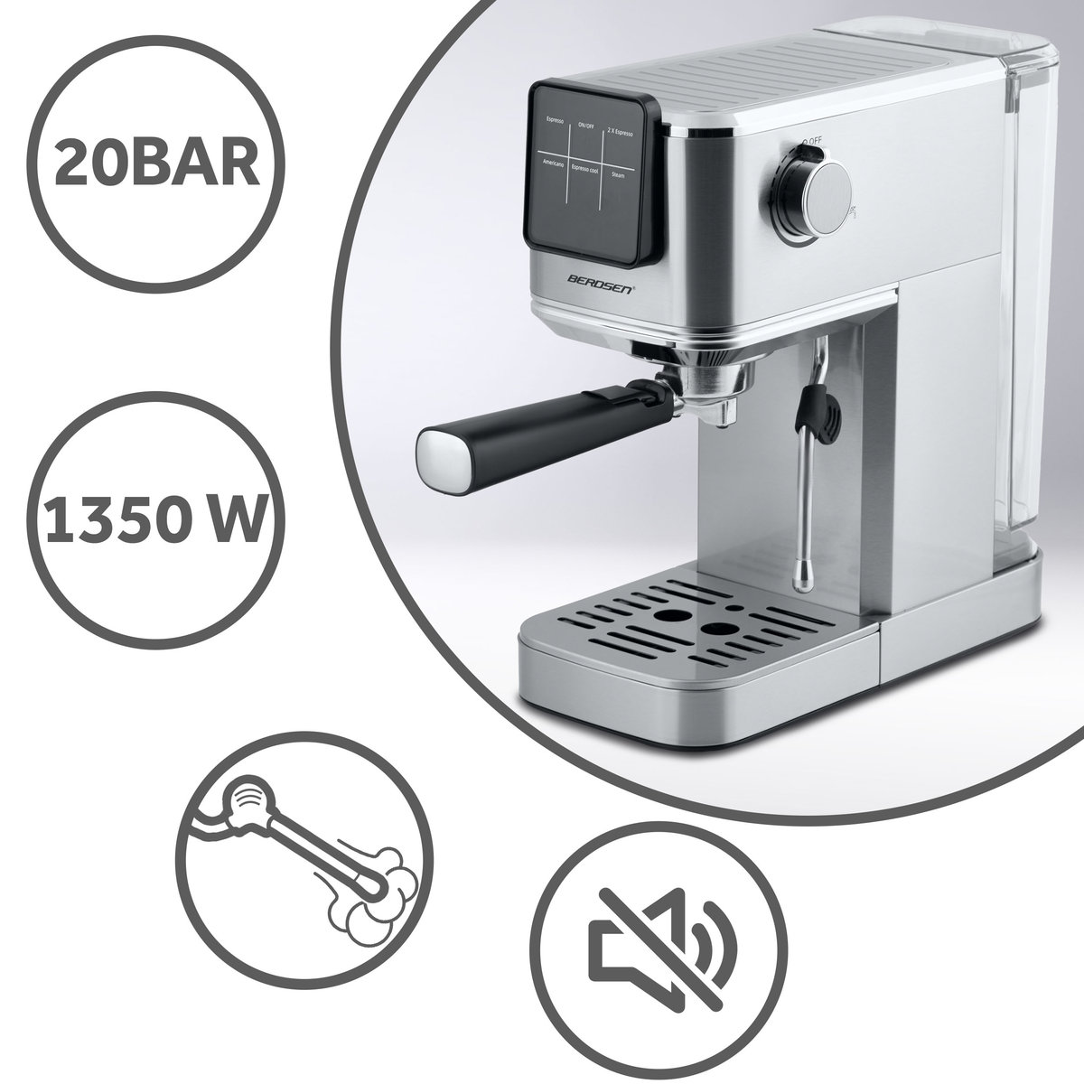 Ekspres kolbowy z dyszą do spieniania mleka 20 bar Zalety produktu: ✅ 20 bar ciśnienia i 1350 W mocy — prawdziwa crema i pełen aromat jak z ulubionej kawiarni. ☕ ✅ Dotykowy ekran — ...