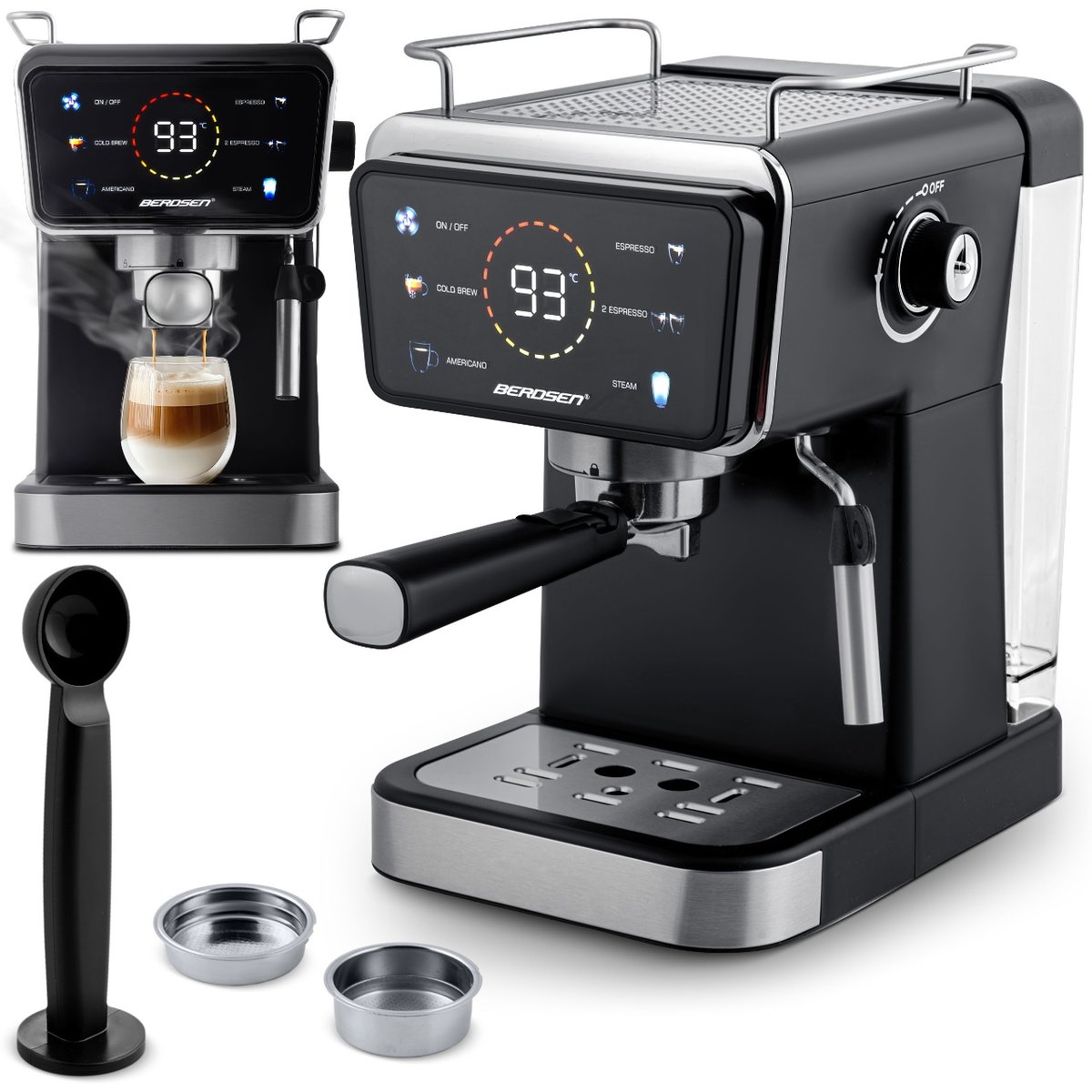 Ekspres kolbowy z dyszą do spieniania mleka 20 bar Zalety produktu ✅ 20 bar ciśnienia i 1350 W mocy — prawdziwa crema i pełen aromat jak z ulubionej kawiarni. ☕ ✅ Dotykowy ekran — ...