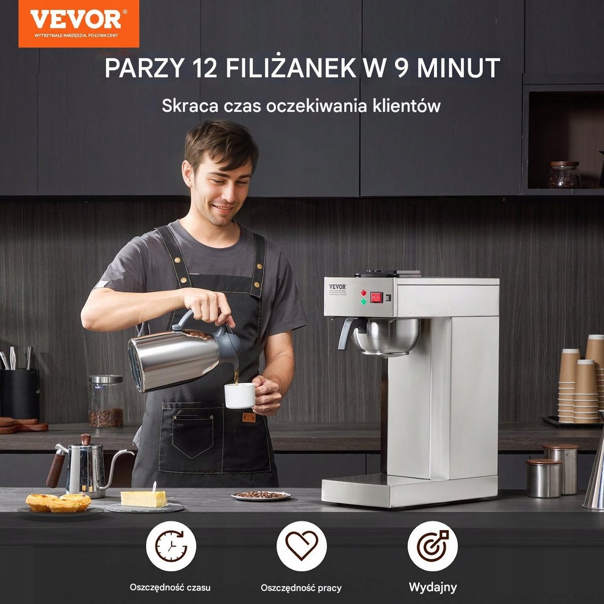 Urządzenie parzy 12 filiżanek w zaledwie 9 minut, co znacząco skraca czas oczekiwania dla klientów.