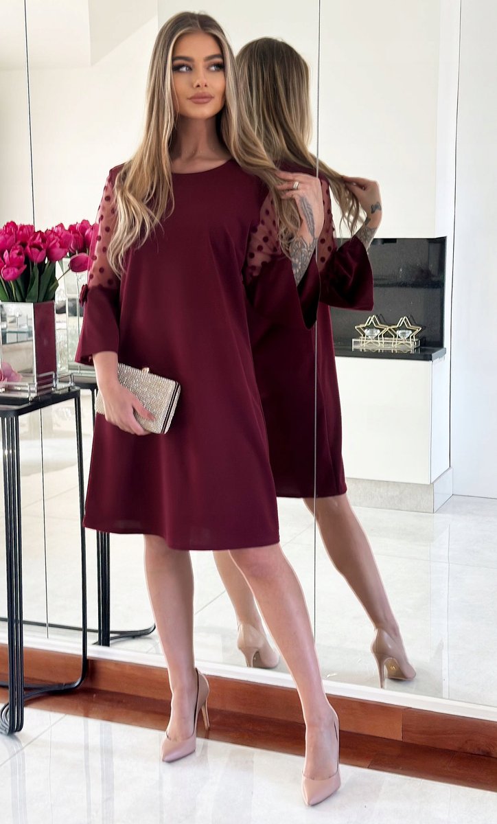 Właśnie zrecenzowałem Elegancka Bordowa Trapezowa Sukienka Rozmiar 38 Polski Producent