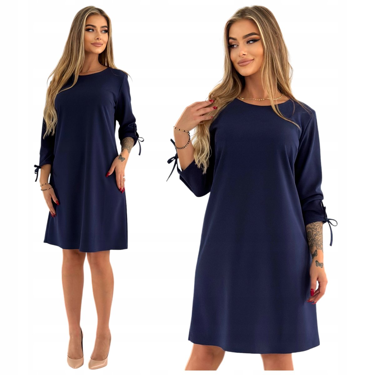 Właśnie zrecenzowałem Elegancka Granatowa Sukienka z Wiązanym Rękawem Rozmiar 48 Polski Producent