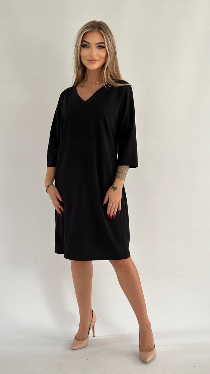 Właśnie zrecenzowałem Elegancka Trapezowa Czarna Sukienka z Dekoltem w Serek Rozmiar 46