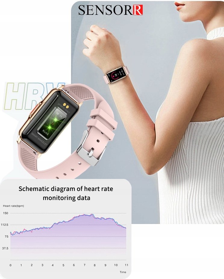 W zegarku zastosowano w najnowszej generacji sensor optyczny, który umożliwia pomiar tętna, ciśnienia krwi oraz poziomu jej natlenienia.