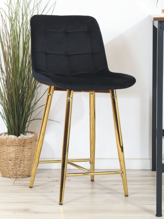 | Nazwa: | Eleganckie niskie krzesło barowe PROXI I pikowane z czarnego weluru na złotych nogach |
