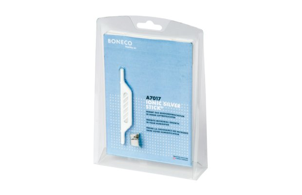 A7017® Srebro jonowe w sztyfcie  Hamuje rozwój drobnoustrojów w nawilżaczu. Zastosowanie: przeznaczone tylko do nawilżaczy Najważniejsze cechy produktu: • Jeden sezon utrzymania optymalnej jakości wody w bazie wodnej • Działa od razu po zetknięciu się z wodą – nawet przy wyłączonym urządzeniu • Wykorzystuje antybakteryjne działanie srebra • Wymieniaj co sezon • Zastosowanie: przeznaczone tylko do nawilżaczy oraz do Airwasherów oraz Hybryd szwajcarskiej marki Boneco • Zawierają substancję czynną: chlorek srebra 200mg/g