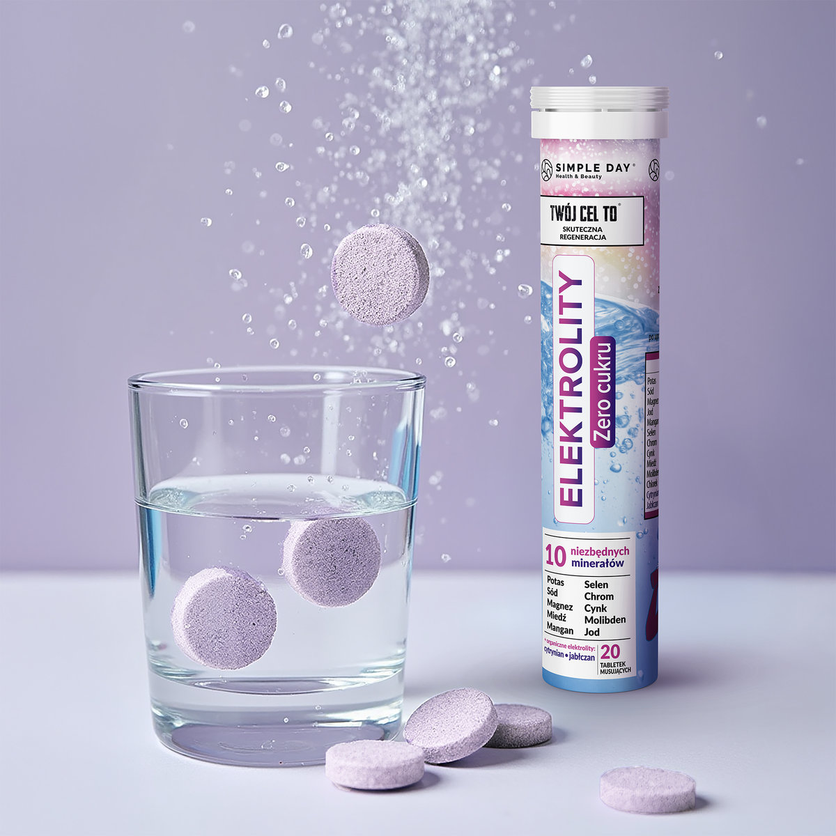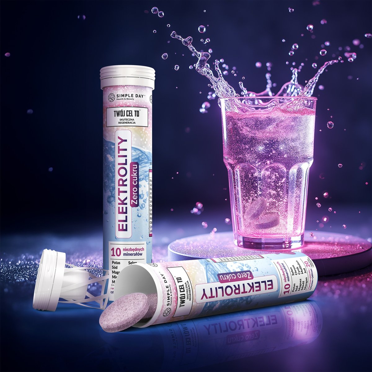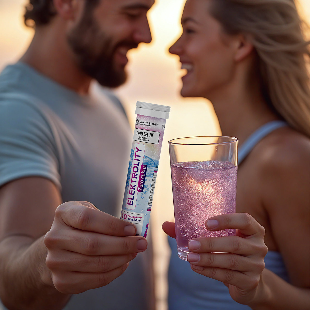 ELEKTROLITY Zero cukru to skład oparty jest na 10 kluczowych minerałach (w tym sodu, potasu, magnezu, jodu, manganu i selenu), które wspierają nawodnienie oraz regenerację organizmu. Dzięki wygodnej formie musujących tabletek, elektrolity są łatwo przyswajalne.