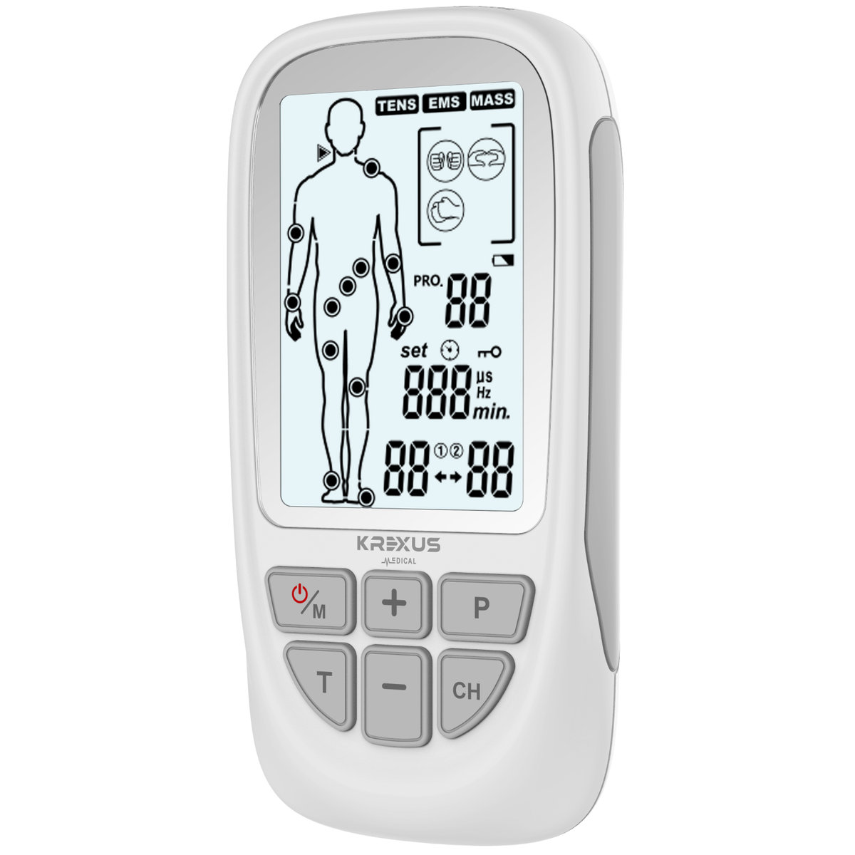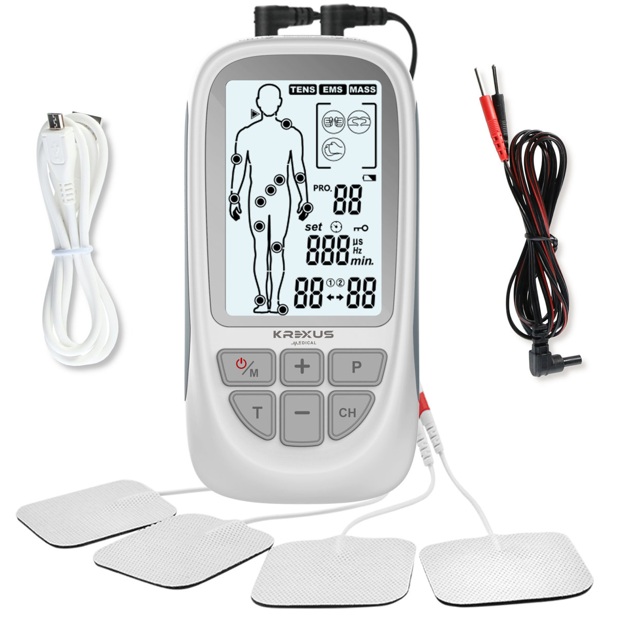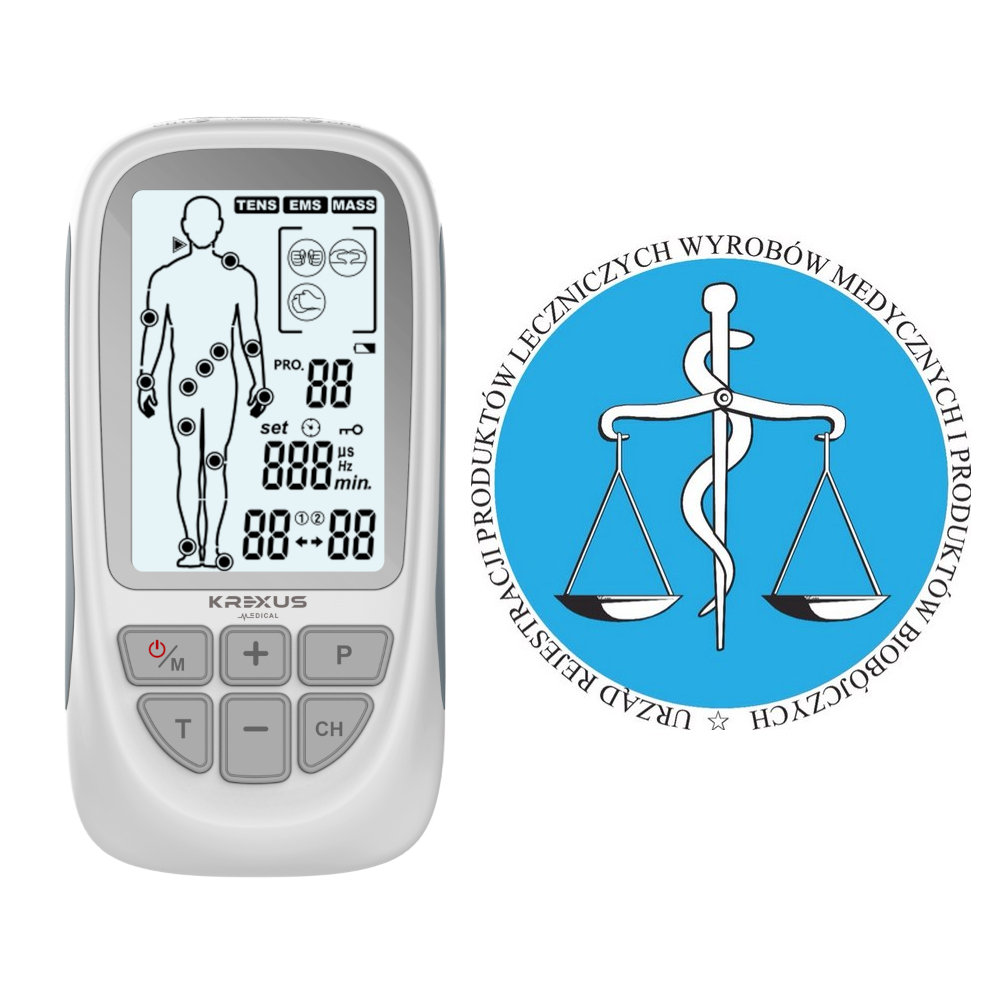Stymulator KREXUS jest stymulatorem masażu z dwukanałowym wyjściem TENS i EMS. Posiada trzy podstawowe funkcje - TENS (przezskórna elektryczna stymulacja nerwów), EMS (elektroniczna stymulacja mięśni) i MASAŻ. Aparat posiada 3 funkcje i aż 73 programy: TENS - leczenie bólu EMS - elektrostymulacja mięśni MASS - masaż relaksacyjny Ponadprzeciętna liczba programów w jakich pracuje nasz elektrostymulator wyróżnia go na tle konkurencji.