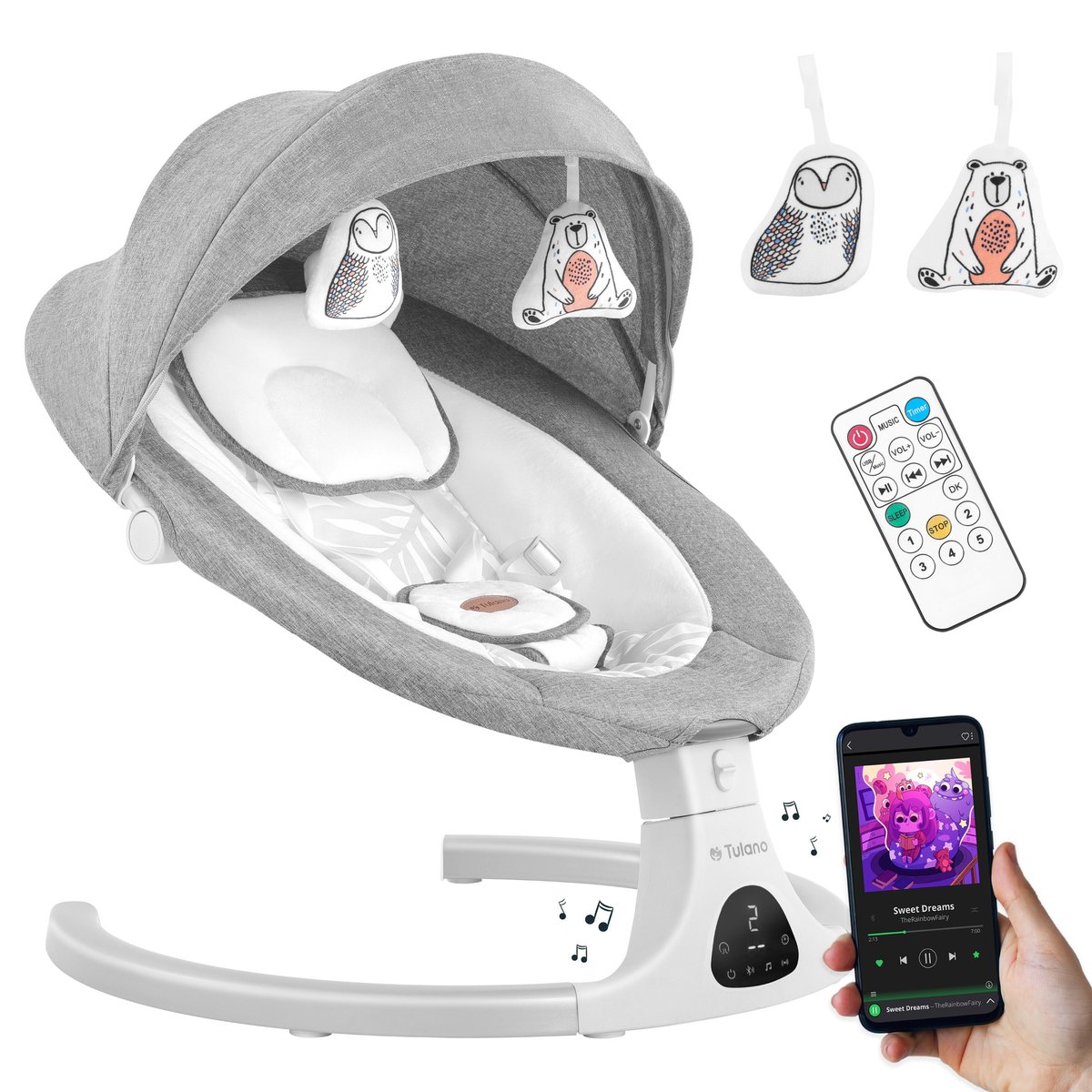 Obsługa bujaczka jest niezwykle intuicyjna dzięki panelowi dotykowemu i pilotowi zdalnego sterowania. Możesz regulować prędkość bujania, włączać muzykę czy ustawiać czas kołysania bez potrzeby podchodzenia do urządzenia.