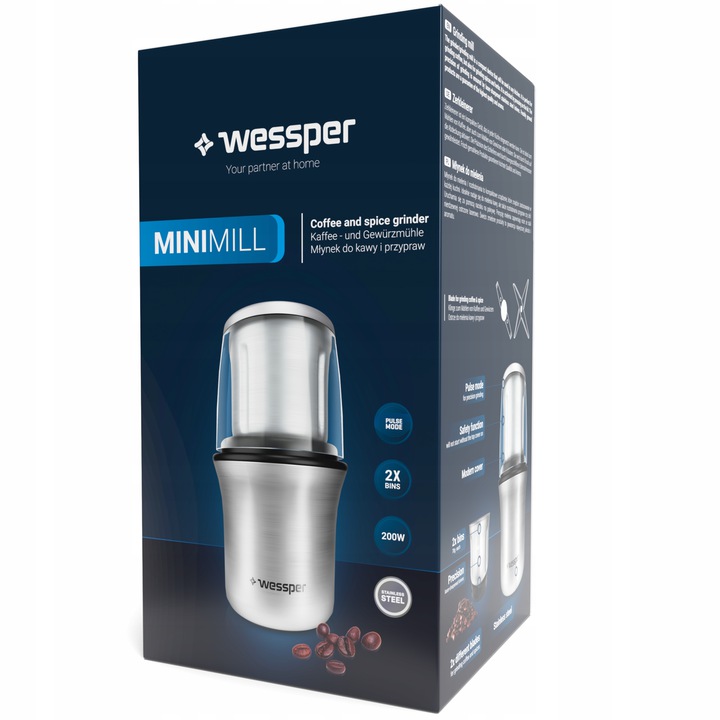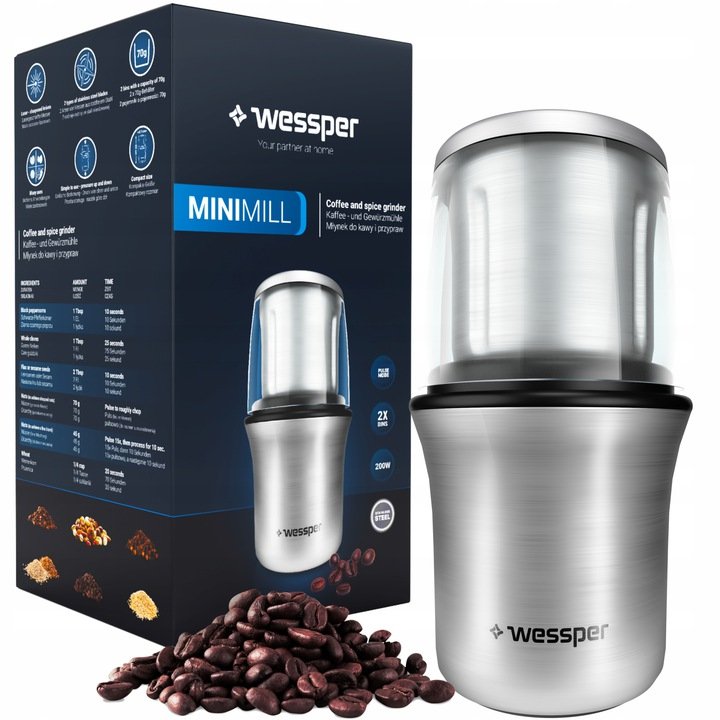 Każdy prawdziwy smakosz kawy i dobrze doprawionych potraw doskonale wie, że najlepszy smak i aromat można uzyskać jedynie ze świeżo zmielonych ziaren. Z pomocą nadchodzi wielofunkcyjne urządzenie Wessper MiniMill, które pozwoli Ci szybko i z łatwością zmielić: