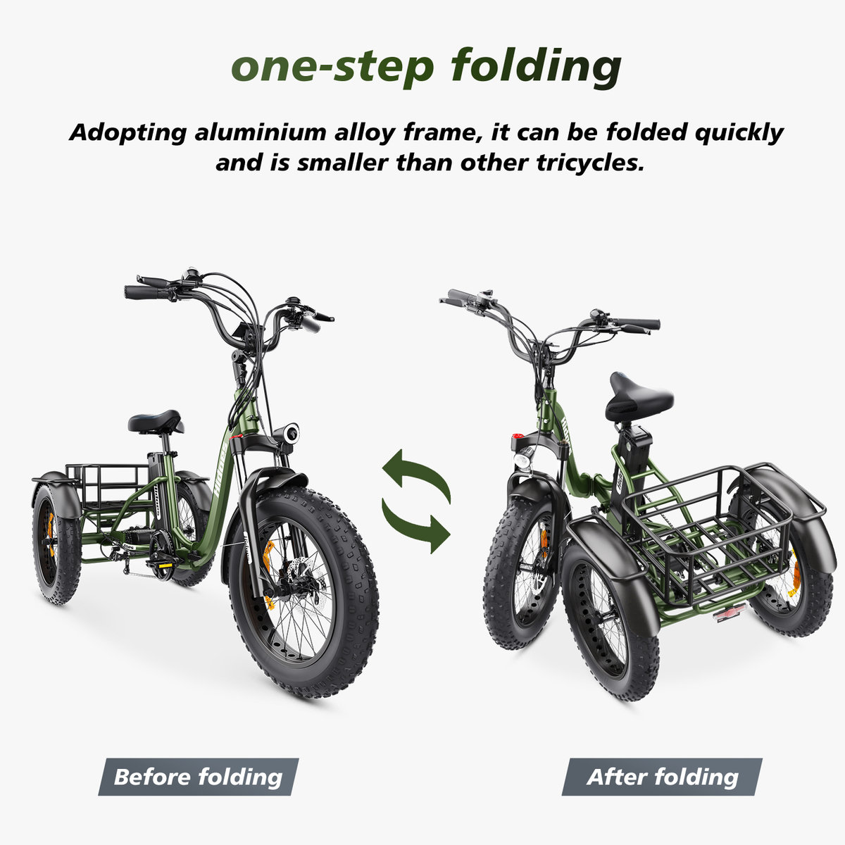 Elektryczny Rower Trójkołowiec Hidoes to innowacyjny pojazd elektryczny, który został stworzony z myślą o osobach ceniących wygodę, funkcjonalność oraz nowoczesne rozwiązania transportowe. Model Hidoes HD-ET1 wyróżnia się składanym designem, co pozwala na zaoszczędzenie przestrzeni podczas transportu i przechowywania. Po złożeniu, rower osiąga kompaktowe wymiary 106*80*80 cm, idealnie mieszczące się w bagażniku samochodu lub w niewielkich pomieszczeniach.