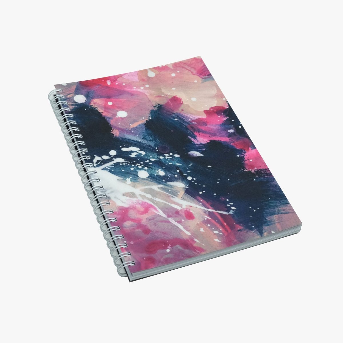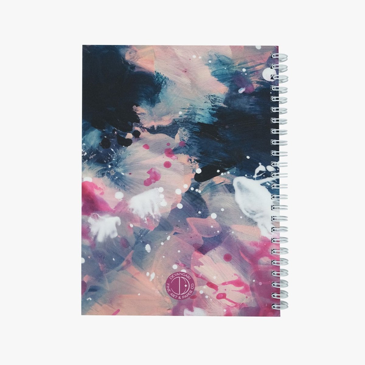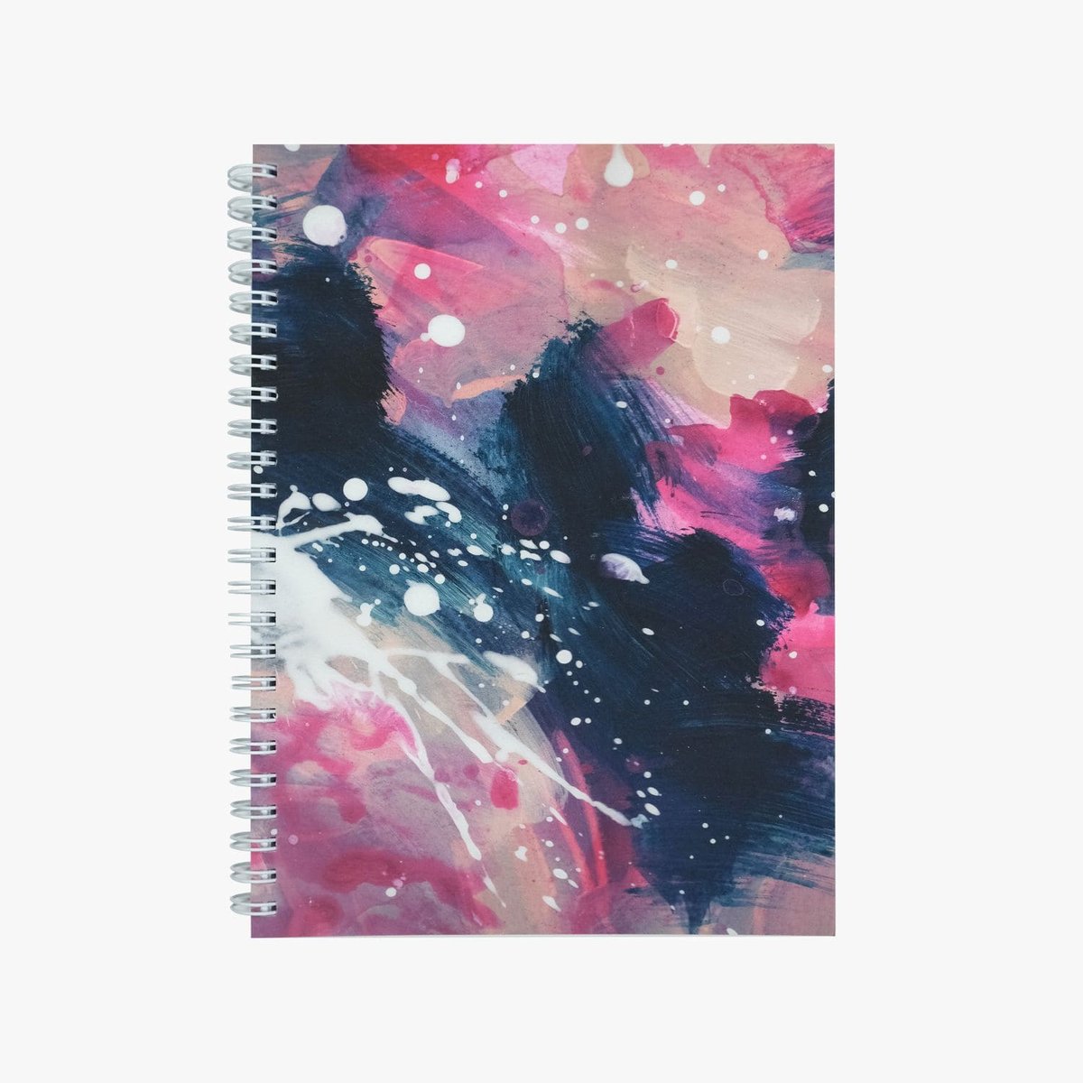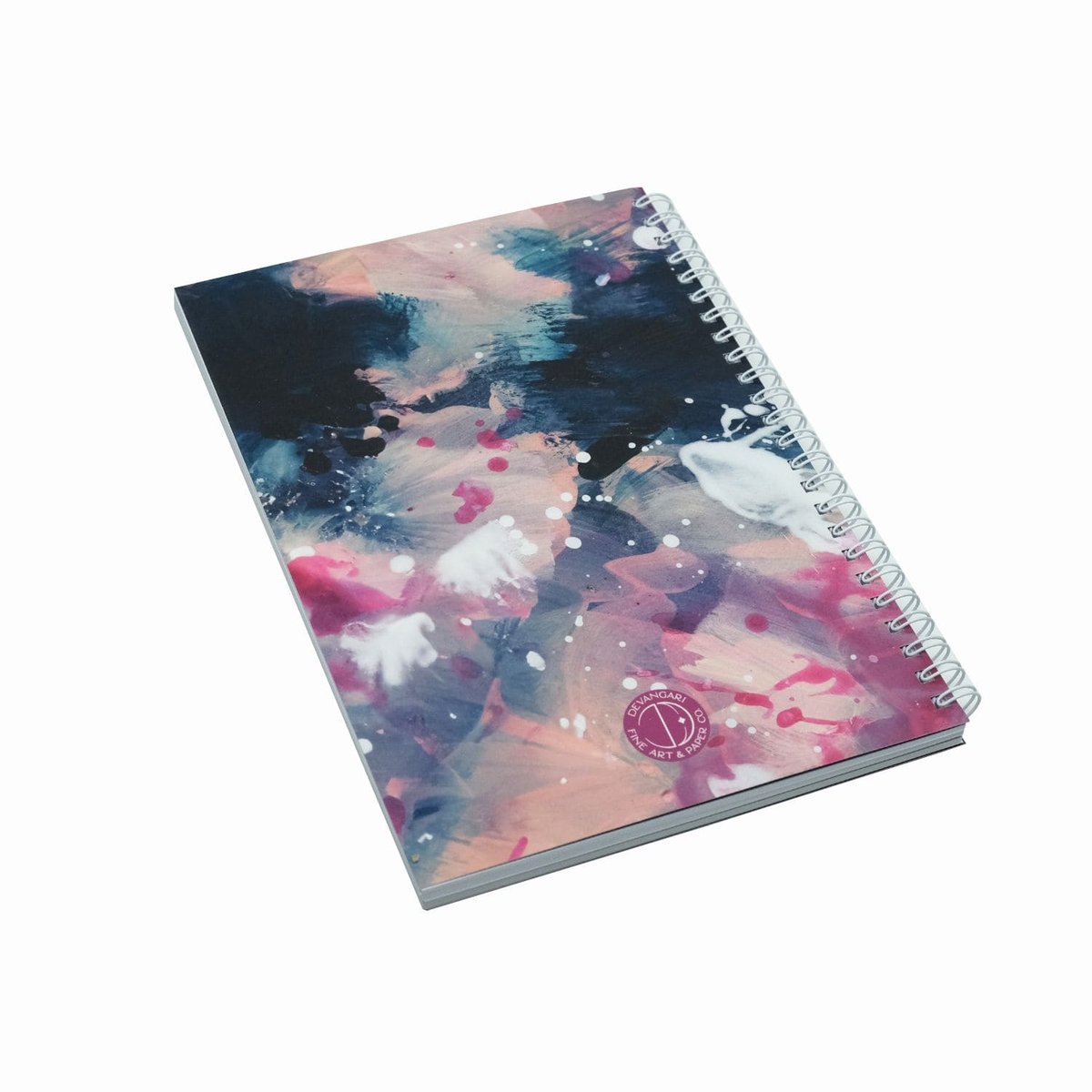 Okładka notatnika Eliksir witalności powstała na bazie obrazu namalowanego akrylami. Przenikające się dynamicznie warstwy farby, pełne ruchu i kontrastu, inspirują do twórczości i ekspresji. Unikalny efekt wizualny to również zasługa tekstury płótna. Ten notes zachęca do odwagi w kreatywnych eksperymentach!
