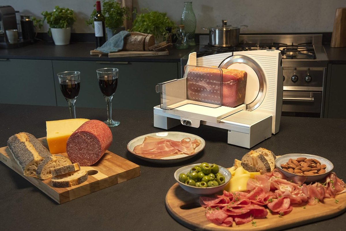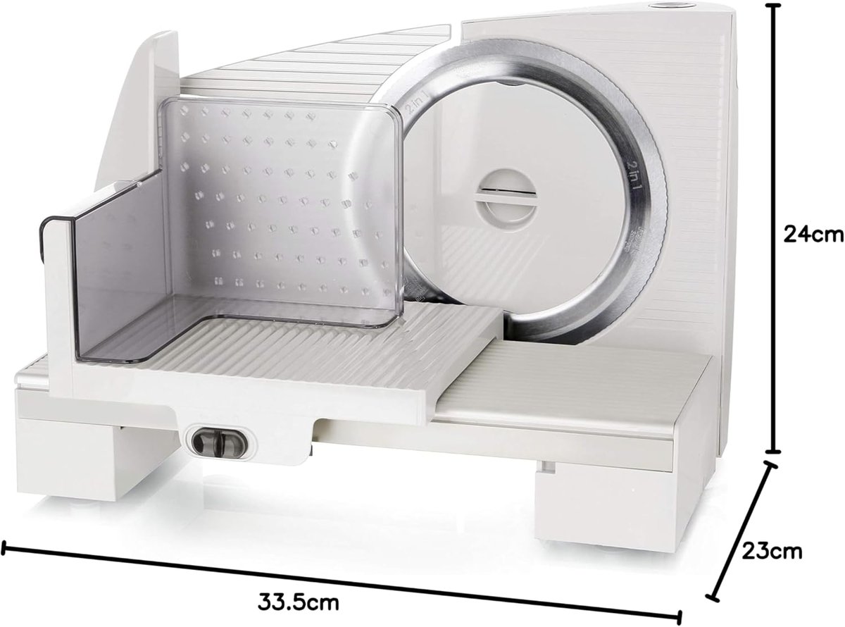 - Zastosowanie: maszyna do krojenia wędlin służy do precyzyjnego i łatwego krojenia różnych produktów spożywczych, takich jak wędliny, sery, chleb czy warzywa. Dzięki regulowanej grubości krojenia pozwala dostosować plastry do indywidualnych potrzeb, zapewniając wygodę i oszczędność czasu podczas przygotowywania posiłków. Idealna do użytku w kuchniach domowych i profesjonalnych, ułatwia codzienne przygotowanie żywności.