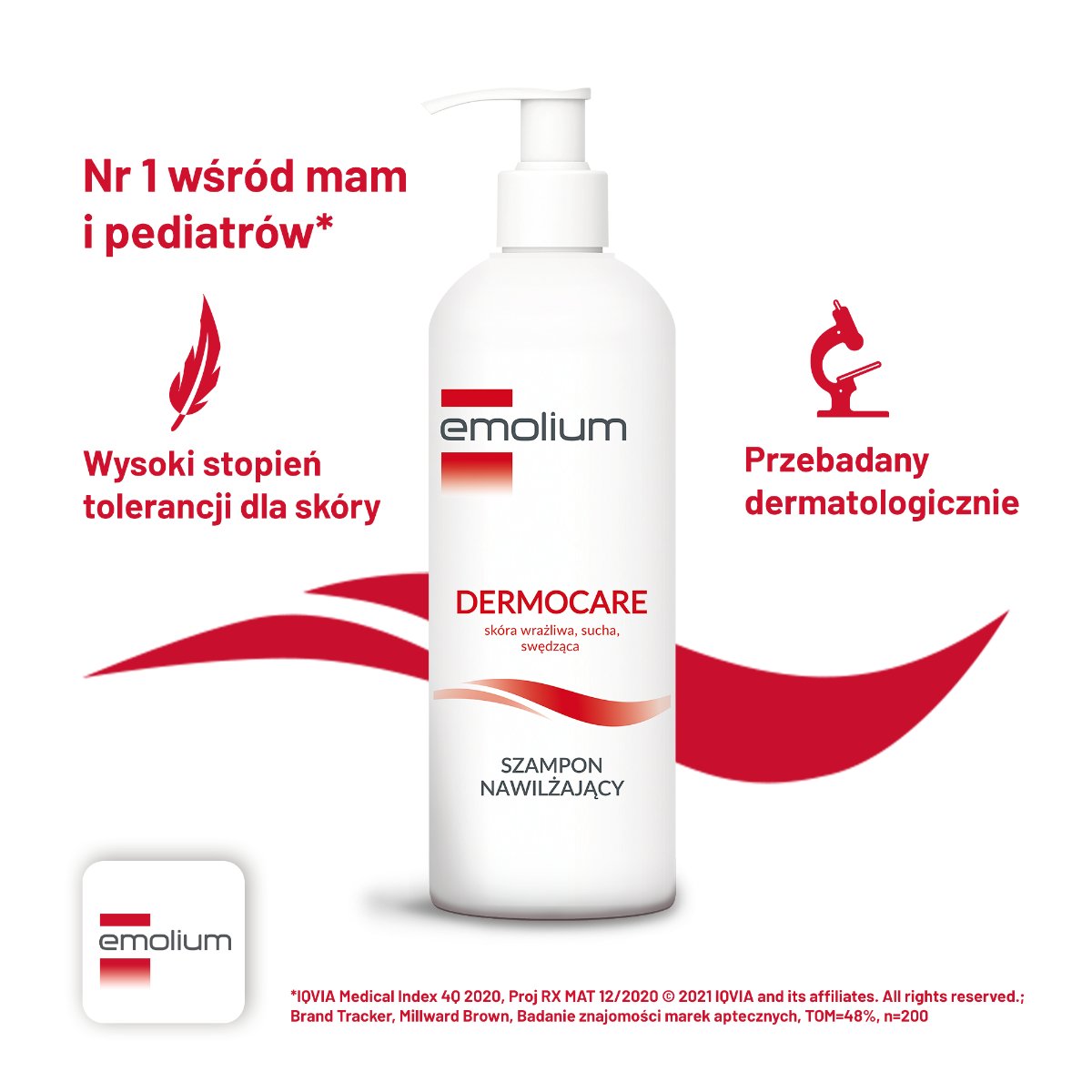 Emolium Dermocare Szampon nawilżający stworzyliśmy specjalnie z myślą o codziennej pielęgnacji włosów oraz wrażliwej, suchej i swędzącej skóry głowy dorosłych i dzieci od 1. miesiąca życia.