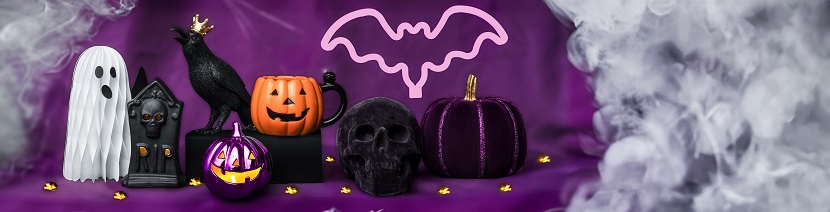 Znajdziesz tutaj duży wybór strrrrasznych dekoracji, a wśród nich figurki dyni, pająki, szklaną kulę z czaszką, halloweenowe kubki z motywem duchów czy nietoperzy.