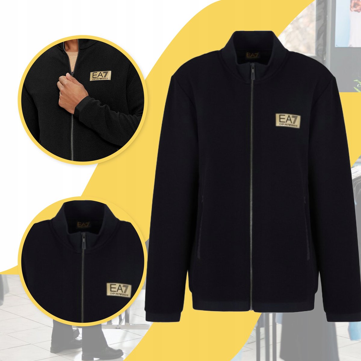 Właśnie zrecenzowałem Emporio Armani EA7 Czarna Bluza Poliester Stójka Sportowe logo zamek r.XL